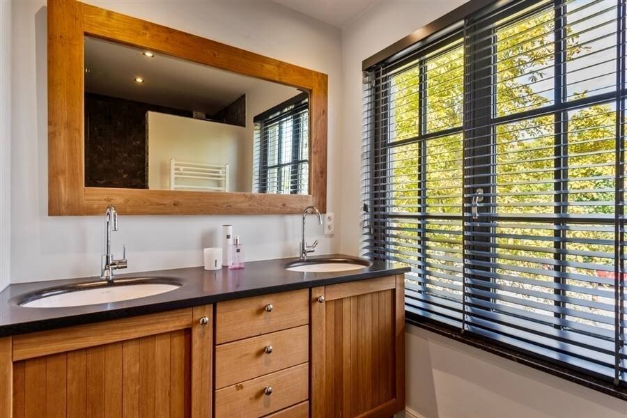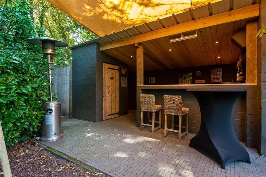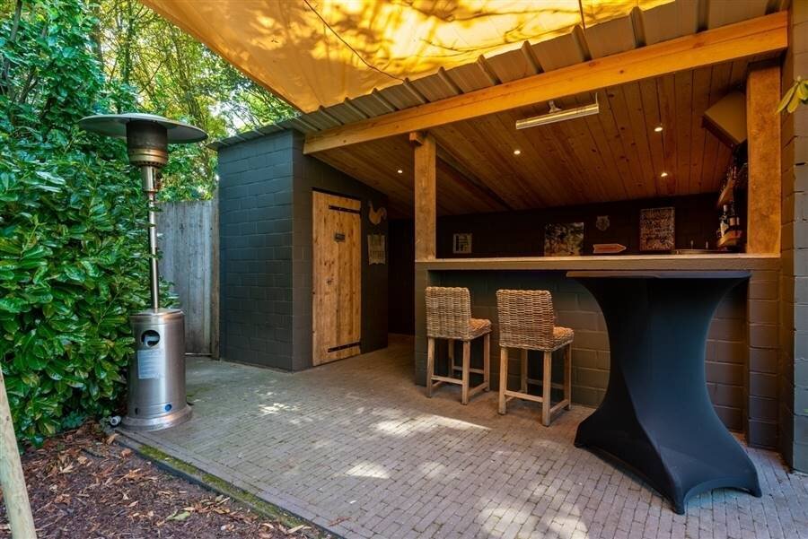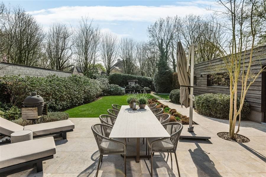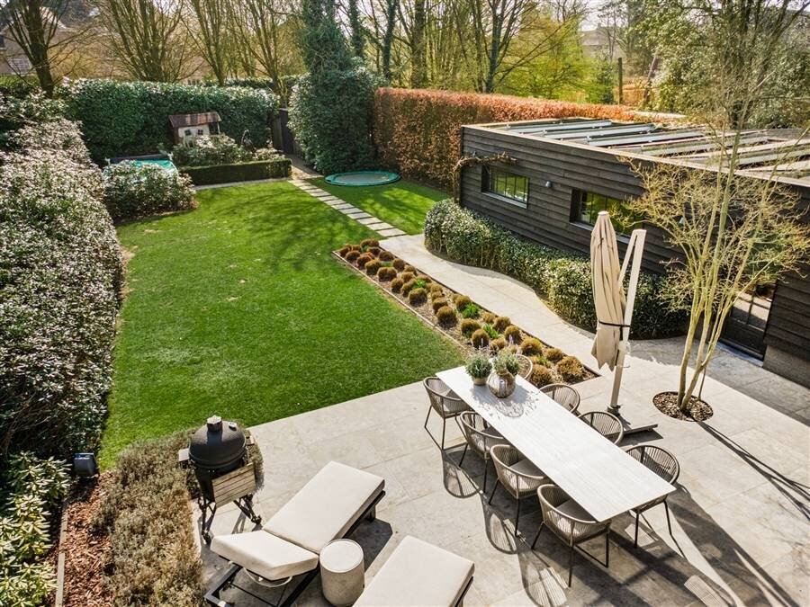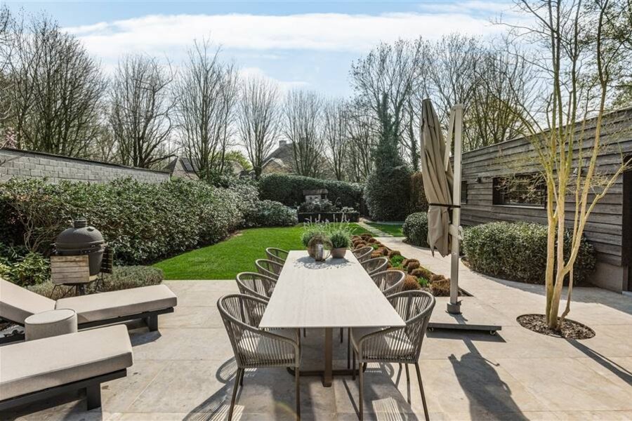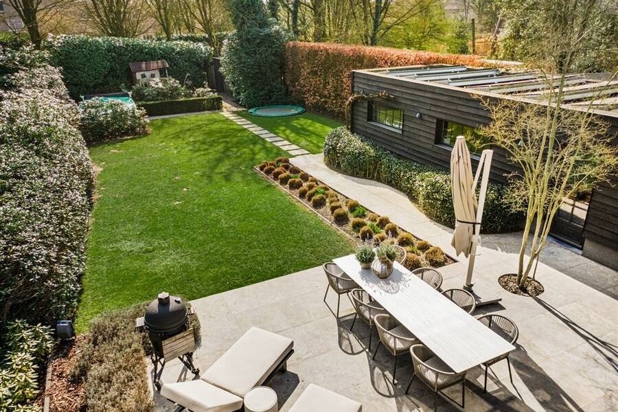 Le jardin est magnifiquement aménagé avec de spacieuses terrasses en pierre bleue et est clôturé. Parfaite orientation sud ! Au fond du jardin se trouve un autre "café-jardin" avec un bar aménagé et des toilettes. Plusieurs places de parking sont prévues à l'avant de la propriété ainsi qu'un point de raccordement pour les véhicules de recharge.