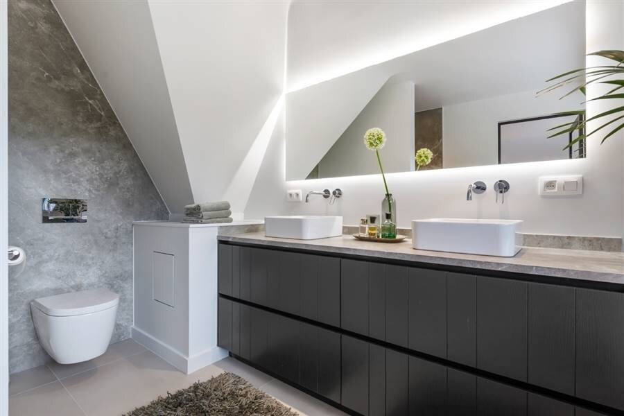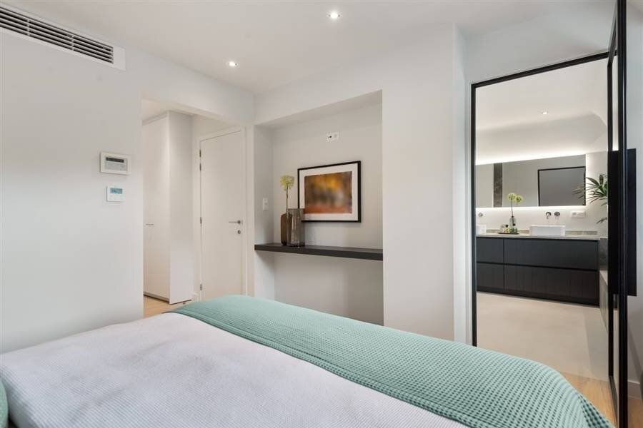 Au dernier étage se trouve la chambre principale composée d'un dressing avec armoires encastrées, d'une chambre climatisée et d'une salle de bains spacieuse avec baignoire, douche à l'italienne, toilettes et double lavabo.