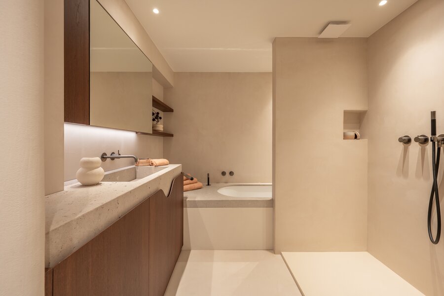 Toutes les salles de bains sont en Mortex et en pierre naturelle de haute qualité.