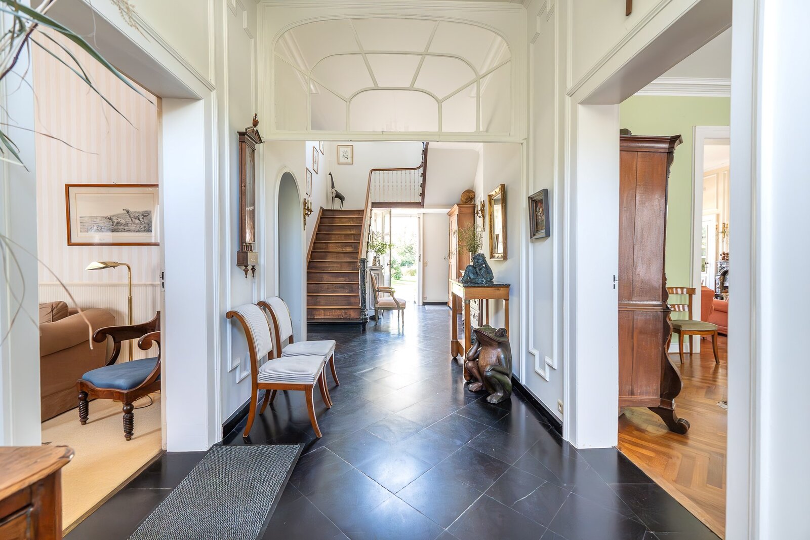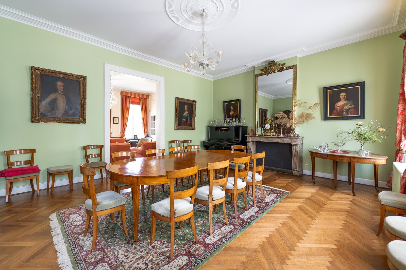 Le rez-de-chaussée s’organise autour d’un vaste hall d’entrée desservant plusieurs pièces de réception : grands salon et salle à manger, petit salon, seconde salle à manger, cuisine, bureau et hall secondaire. Une buanderie et un second bureau complètent l’ensemble, permettant également un usage mixte privé et professionnel. L’étage comprend 5 chambres et 4 salles de bains. Le second niveau propose une salle de jeux, 2 chambres supplémentaires et un grenier aménageable.