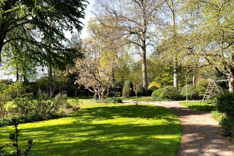 Le parc romantique du XIXe siècle, attribué à Louis Fuchs, rassemble plus de 2.500 espèces dont 400 rhododendrons et de nombreuses essences remarquables. Dépendances : conciergerie, bureaux, piscine intérieure, annexes, carport et glacière historique. Permis obtenu pour 4 garages. Ancien forage, circuit d’arrosage et système de sécurité. PEB D.