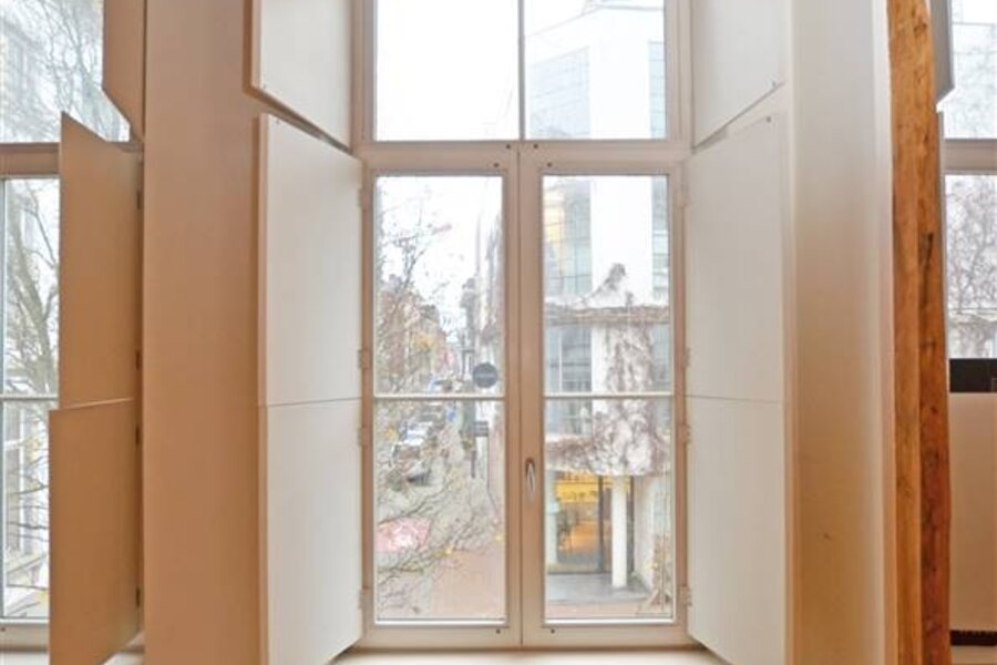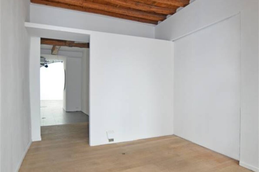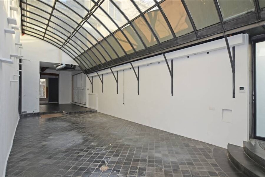 Het handelspand op het gelijkvloers omvat een aangename ruimte met een mooi zicht op de binnenstad, een kitchenette en een doorloop naar de indrukwekkende orangerie achteraan. De royale glaspartij creëert een open, lichte sfeer en maakt deze ruimte geschikt voor uiteenlopende commerciële concepten. Dankzij de achterdeur met toegang via het steegje is het pand ook langs achter bereikbaar — een absolute meerwaarde voor zowel logistiek als privacy.
