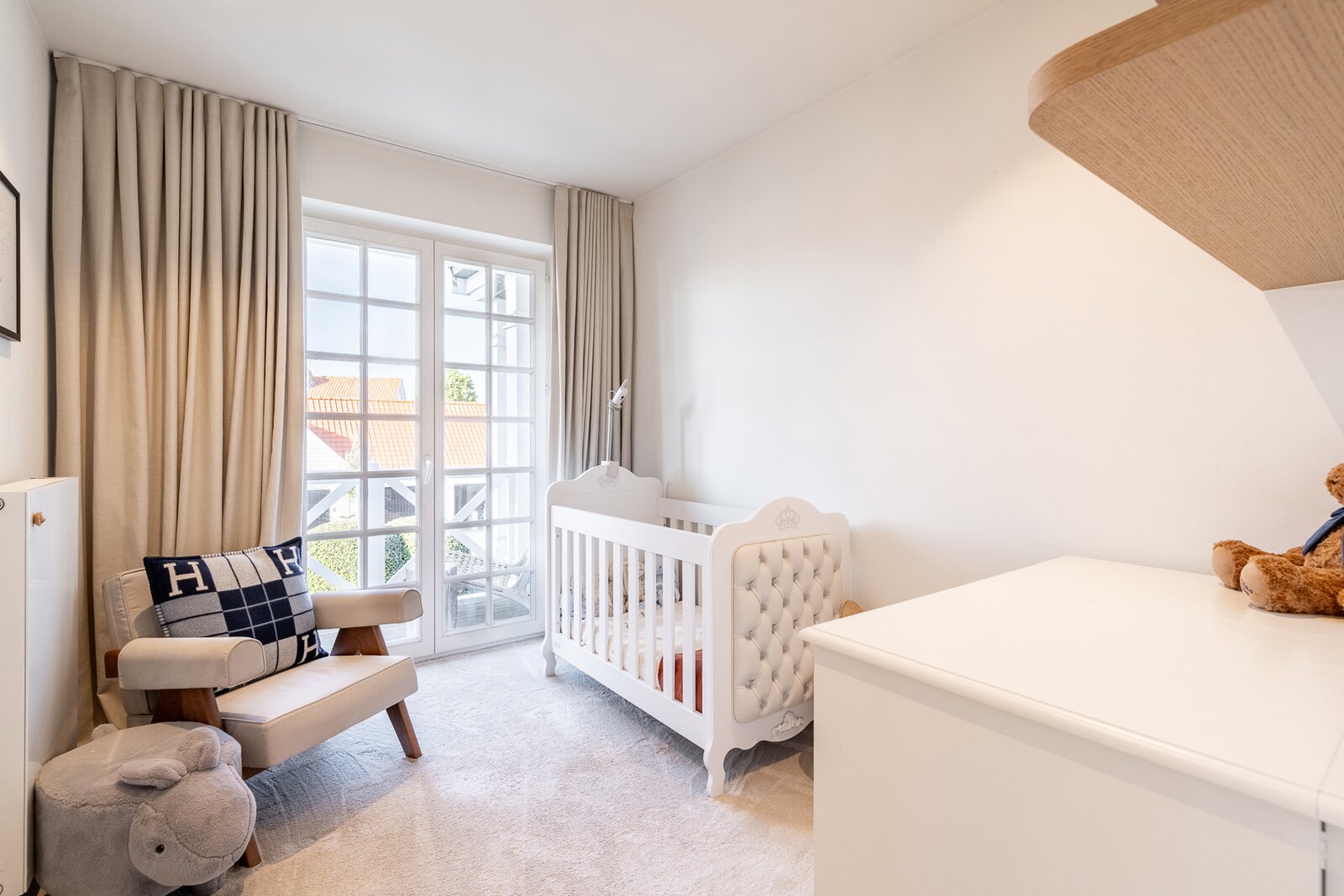 Le deuxième étage comprend deux chambres supplémentaires, dont une actuellement aménagée en vaste dressing.