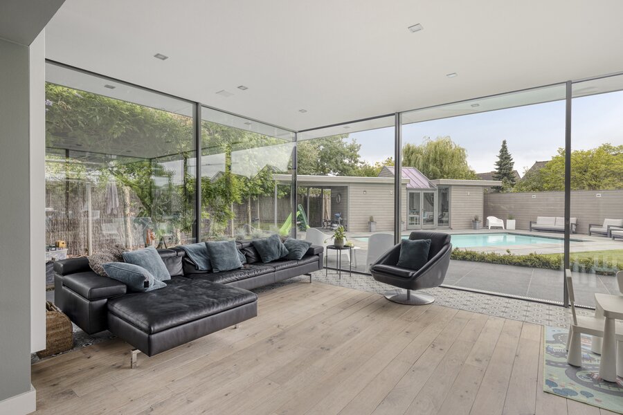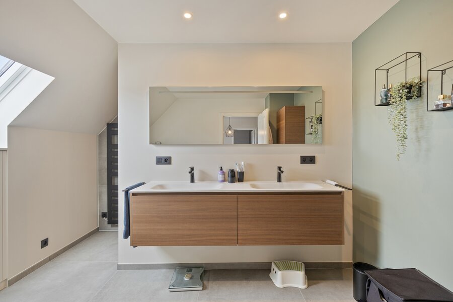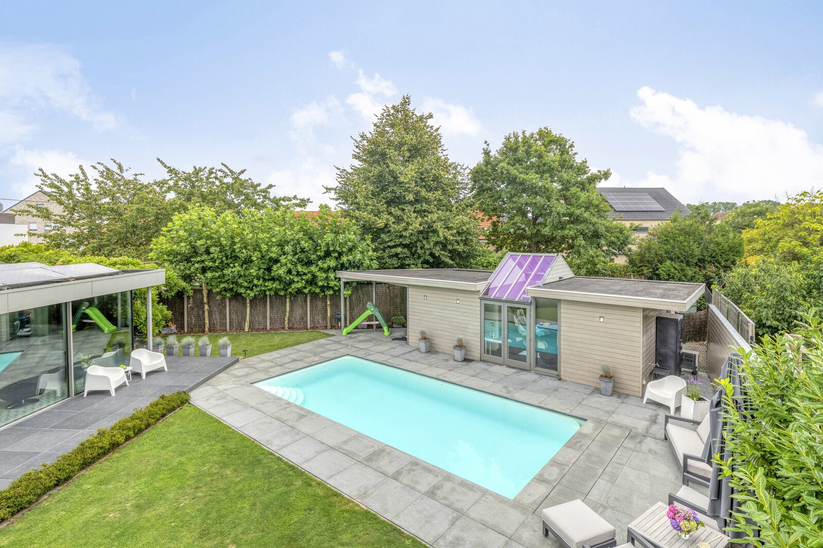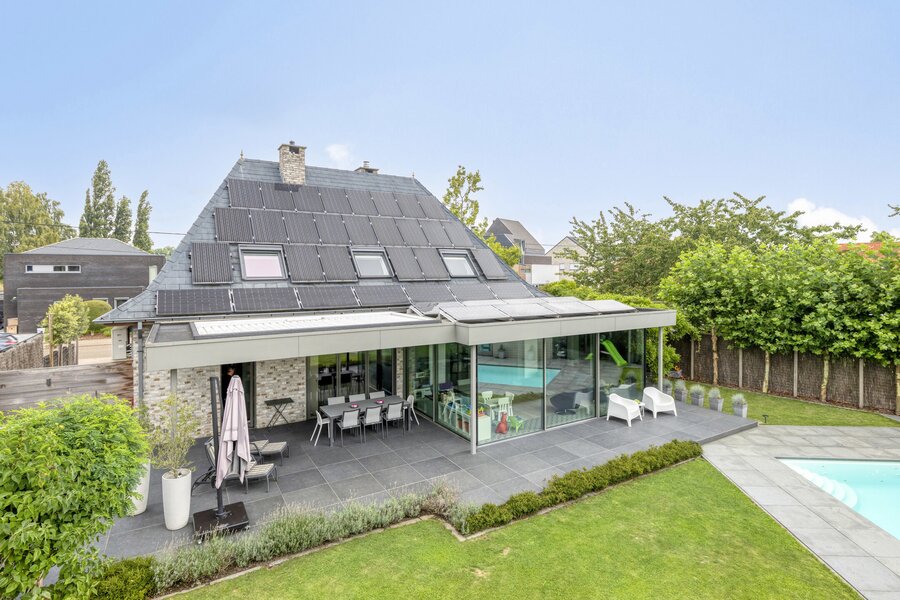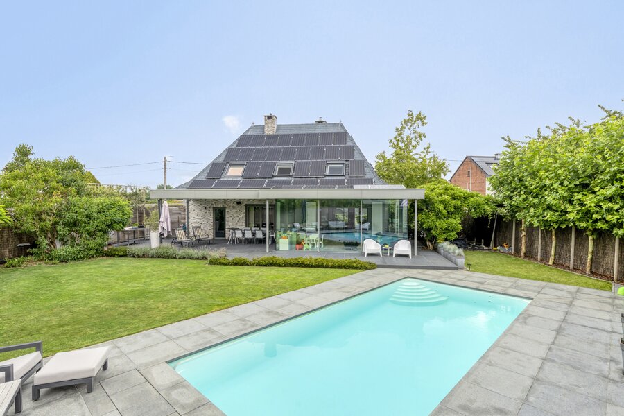 Bienvenue dans cette villa moderne prête à emménager (1995) de 243m² (garage exclus), située sur un terrain de 851m² à Zemst. Cette maison se distingue par son haut niveau de finition, son excellent état d'entretien et son magnifique jardin orienté sud-ouest, aménagé avec piscine et poolhouse. Vous êtes accueilli dans un hall d’entrée avec toilettes séparés et vestiaire. Le séjour en parquet avec foyer à gaz crée une atmosphère chaleureuse et accueillante. Depuis la véranda (2014), vous profitez d’une vue panoramique sur le jardin grâce aux grandes fenêtres qui inondent l’espace de lumière naturelle. Toutes les fenêtres du rez-de-chaussée ont été remplacées en 2017 et certaines sont équipées de stores automatiques. La cuisine attenante est entièrement équipée avec des appareils Miele (2011), dont un four à vapeur, un four classique, un lave-vaisselle en hauteur, un grand frigo et un bel îlot de cuisson avec plaque à induction. À côté de la cuisine se trouvent une arrière-cuisine/buanderie pratique et un spacieux garage/débarras. À l’étage, vous trouverez un hall de nuit avec un coin bureau (15 m²) et 3 grandes chambres, dont une suite parentale de 17 m² avec placards intégrés et 2 autres chambres de 15 m². La salle de bains a été rénovée en 2021 et comprend une douche à l’italienne, un double lavabo, des toilettes et un chauffage au sol. De plus, toutes les fenêtres de toit sont équipées de volets automatiques. Le jardin orienté sud-ouest offre beaucoup de détente avec une terrasse couverte (25 m²) à toit à lames orientables, une piscine chauffée (2005) et un poolhouse (23 m²) avec douche et sauna. La maison est très économe en énergie avec un PEB A et dispose de 48 panneaux solaires (2016). Autres équipements : un adoucisseur d’eau, un chauffe-eau électrique, … La situation centrale à Zemst allie tranquillité, verdure et excellente accessibilité vers Malines, Bruxelles et Anvers. Écoles, commerces, installations sportives et nature sont à proximité. Installation électrique conforme !