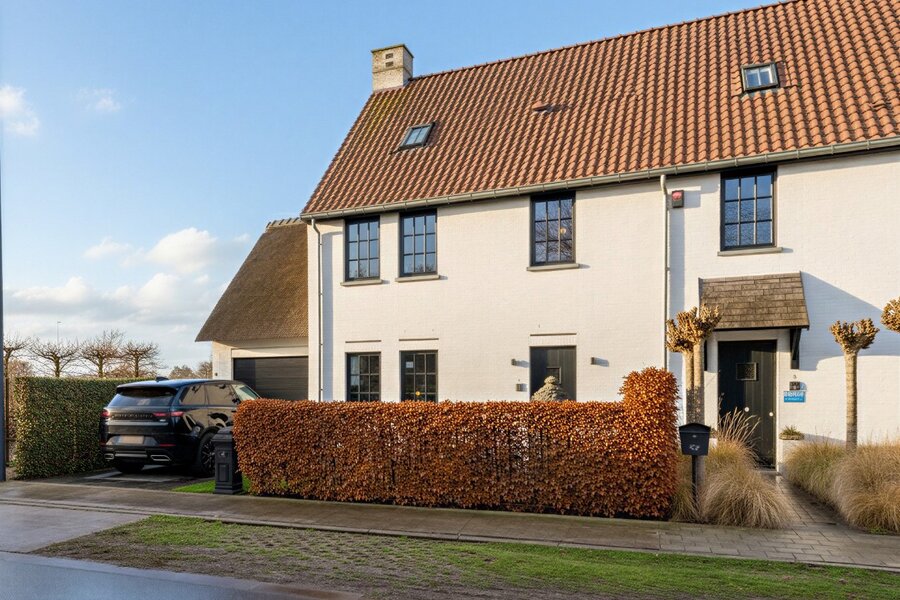 Deze halfopen bebouwing landelijke gelegen in Westkapelle (Knokke-Heist) werd gebouwd in 2017 in de typische moderne lijn van de Knokse Cottagestijl.