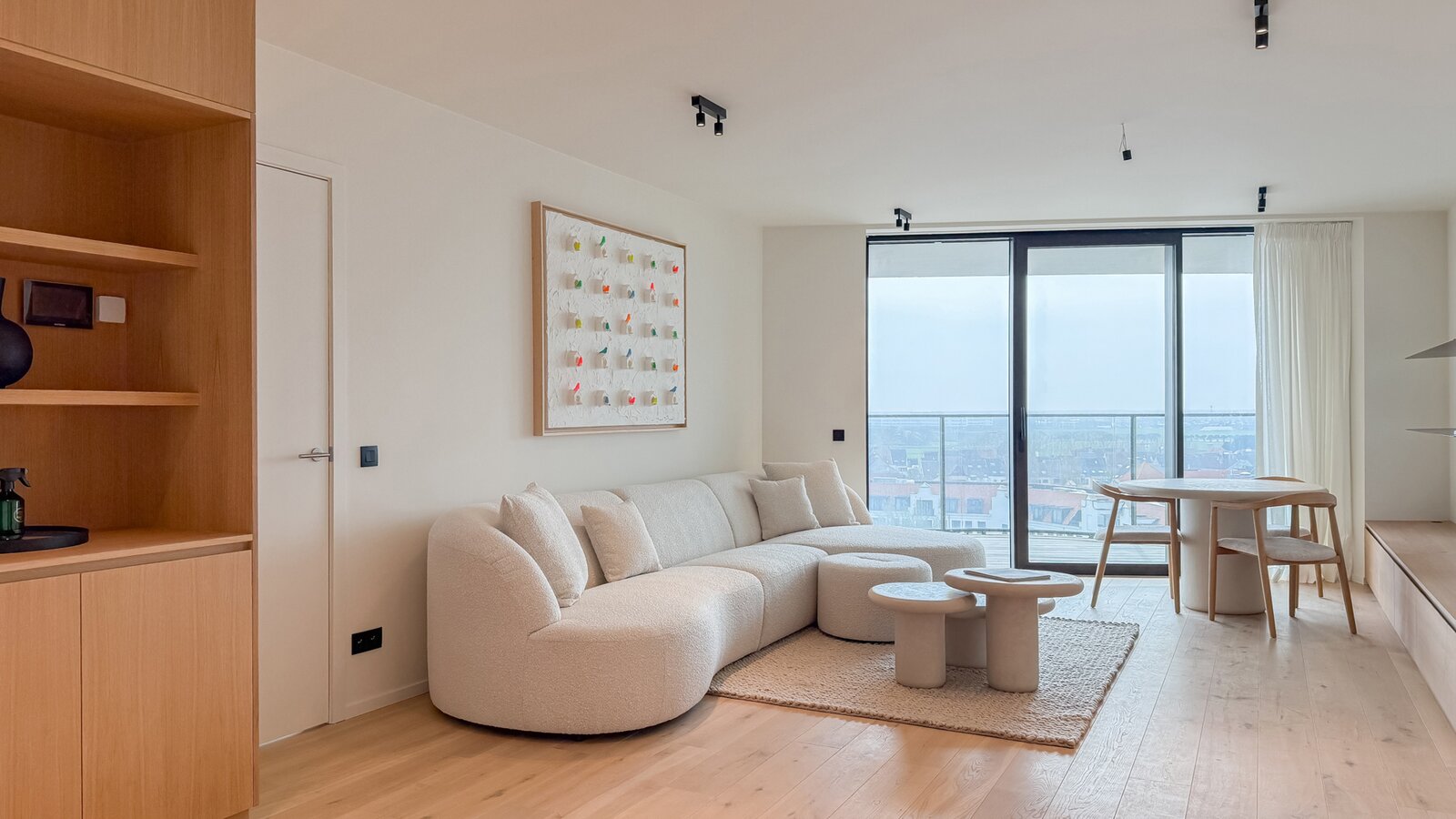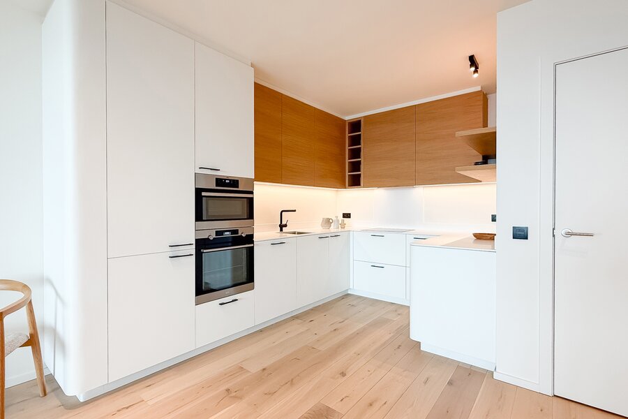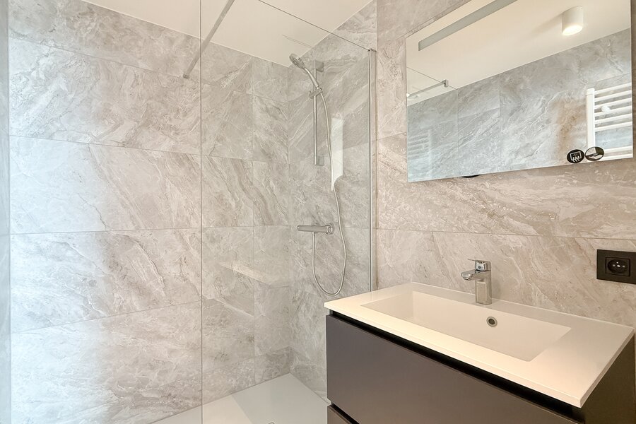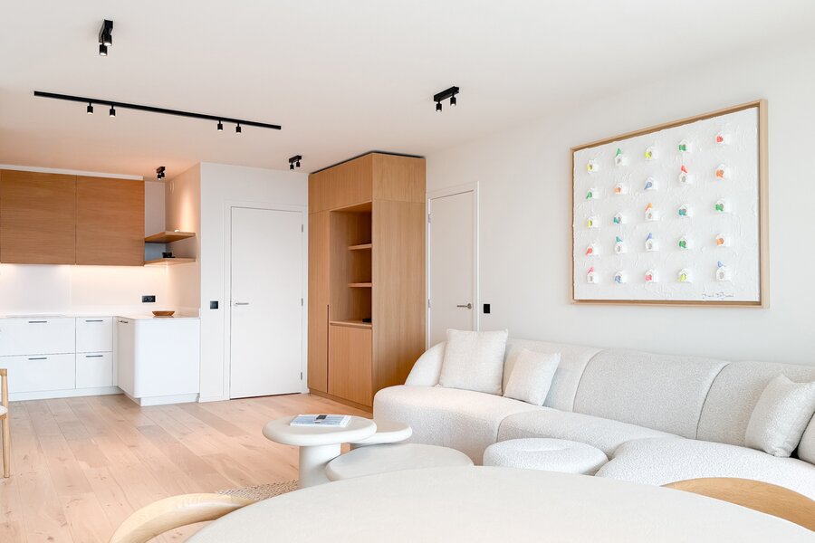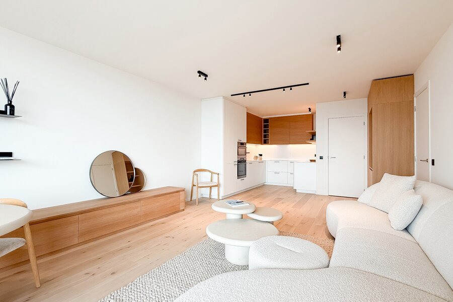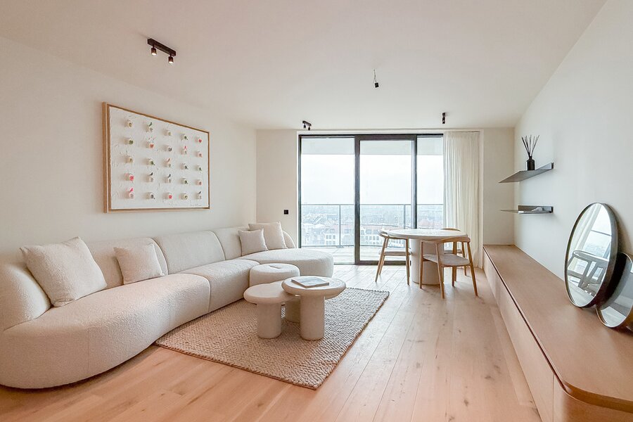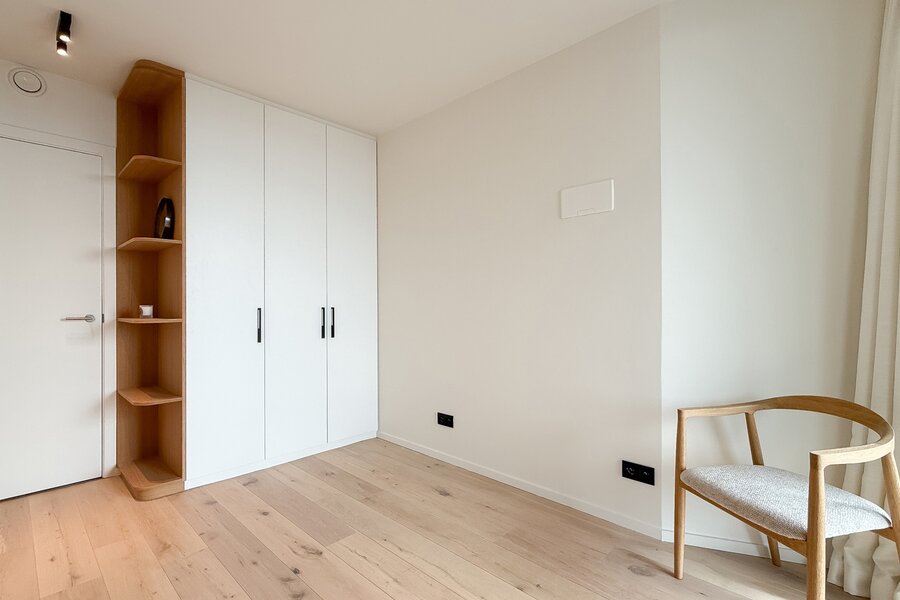 Cet élégant appartement allie confort, raffinement et situation exceptionnelle. Le séjour lumineux, à l’agencement ouvert et aux finitions haut de gamme, s’ouvre harmonieusement sur une spacieuse terrasse qui s’étend sur toute la largeur de l’appartement. Vous y profitez d’une vue panoramique à couper le souffle sur la skyline de Knokke-Heist.