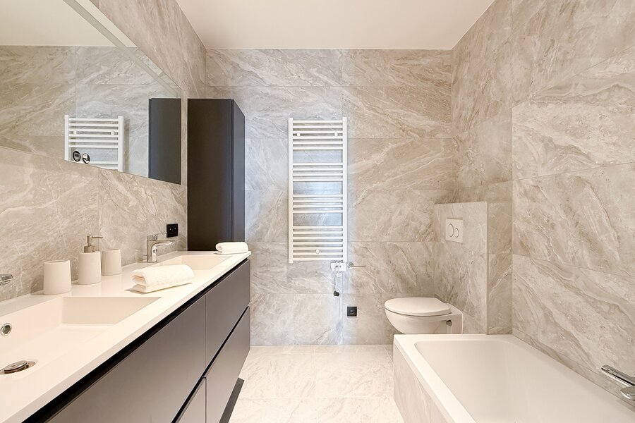 Les deux chambres, de belles dimensions, disposent chacune d’un accès direct à la terrasse et bénéficient chacune de leur propre salle de bains ou salle de douche, garantissant confort et intimité.