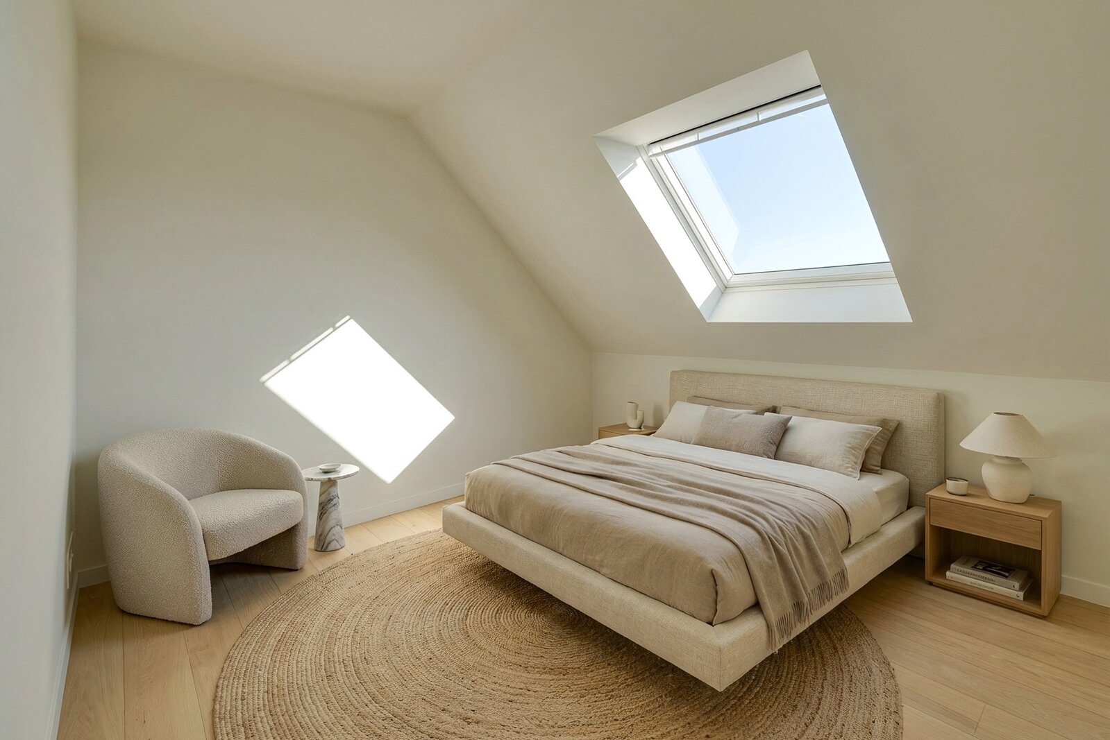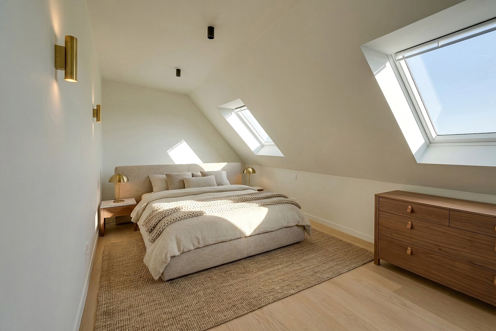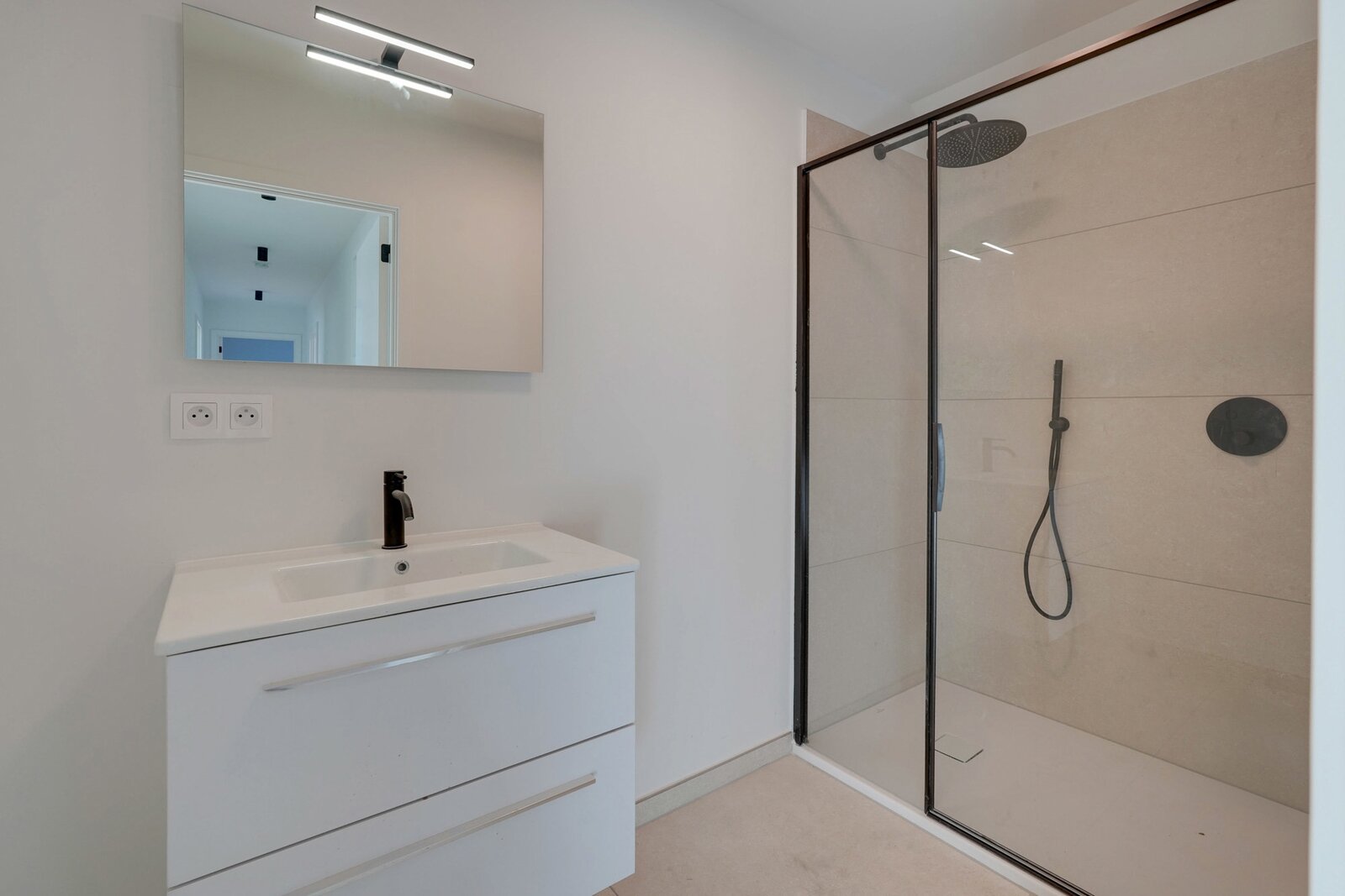 L’espace nuit propose trois belles chambres à coucher, pensées pour le confort de toute la famille. Vous y trouverez également deux salles de bains modernes : la première équipée d’une douche à l’italienne, d’un meuble lavabo et d’un WC suspendu, la seconde disposant d’une douche à l’italienne et d’un meuble lavabo.