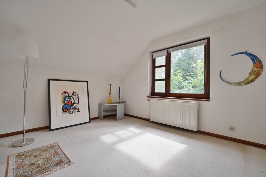 Op de bovenverdieping is een apart toilet voorzien voor extra comfort en privacy. Via een ruime overloop van 13 m², uitgerust met ingebouwde kasten en verlicht door een Veluxraam, bereikt u de zolderverdieping.