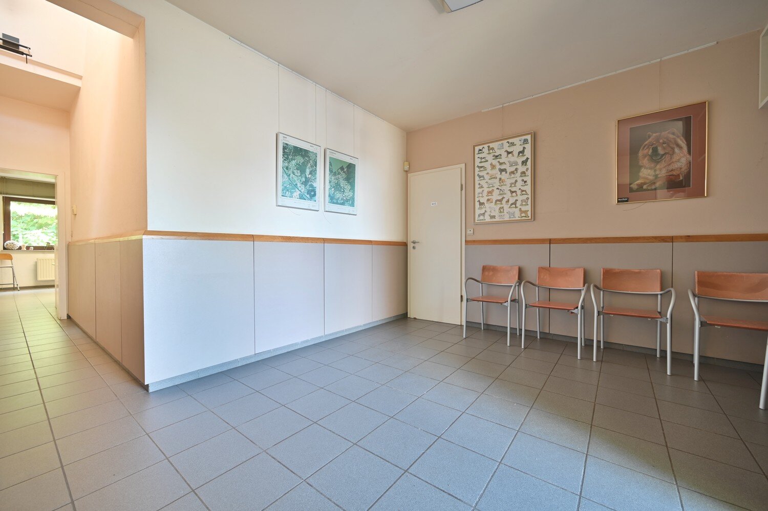Vanuit de wachtzaal betreedt u de praktijkruimte van 24 m², eveneens afgewerkt met een keramische vloer en voldoende lichtinval.