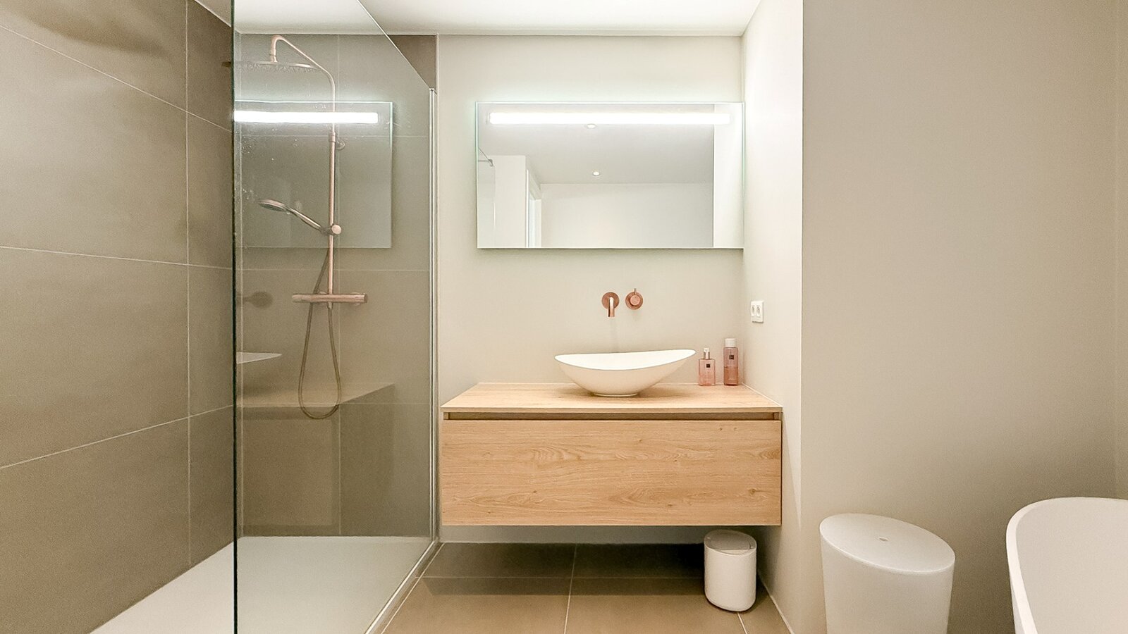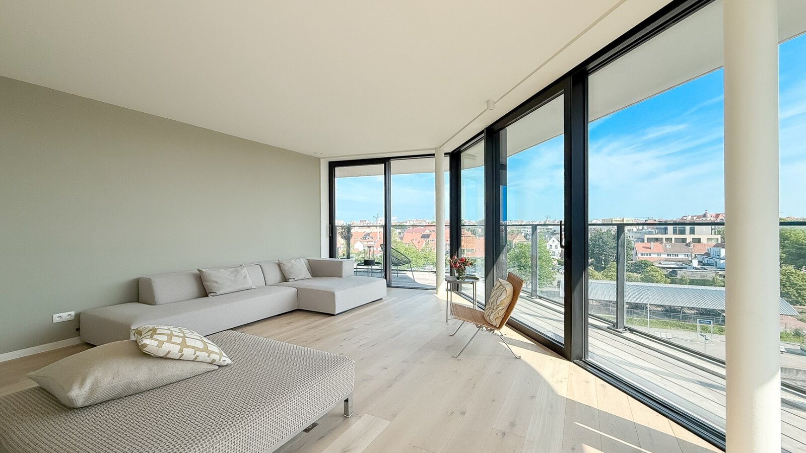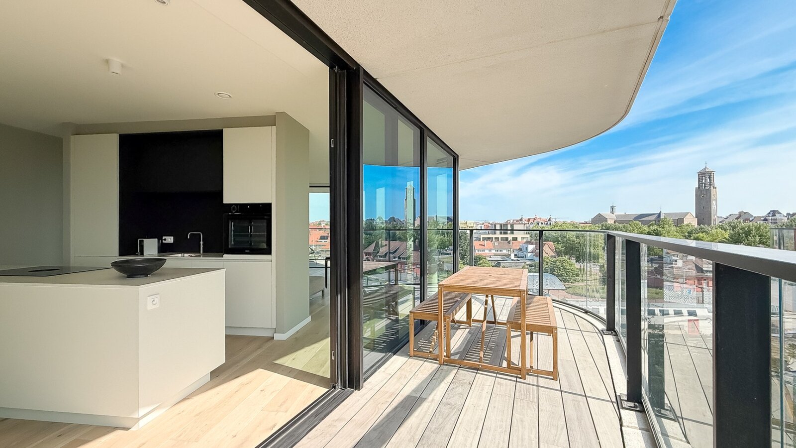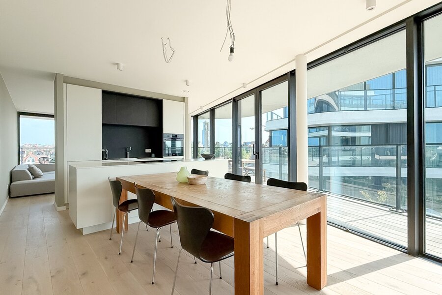 L'appartement est situé au quatrième étage et bénéficie d'une abondance de lumière naturelle grâce aux grandes fenêtres et aux terrasses tout autour. En passant par le hall d'entrée avec toilettes invités, vous entrez dans le spacieux salon. La cuisine ouverte avec îlot central s'intègre parfaitement à la salle à manger. De plus, un débarras pratique est prévu. Il y a 2 chambres, toutes deux donnant sur la terrasse. La salle de bains élégamment finie est équipée d'une baignoire, d'une douche à l'italienne et d'un double lavabo.