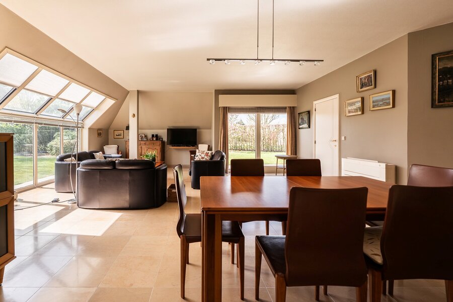 Met een bewoonbare oppervlakte van ca. 304 m² en een optimale zuidgerichte oriëntatie, biedt deze zeer goed onderhouden villa een uitzonderlijke lichtbeleving en een naadloze connectie met de tuin. De leefruimte wordt gekenmerkt door haar openheid en grote glaspartijen, met aansluitend een ruime keuken en bijkeuken.