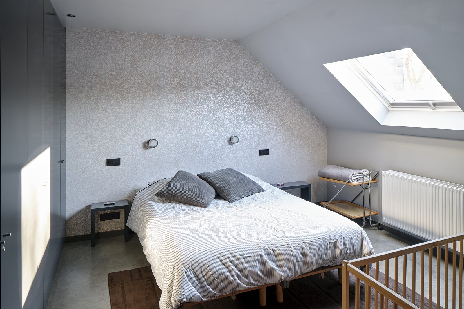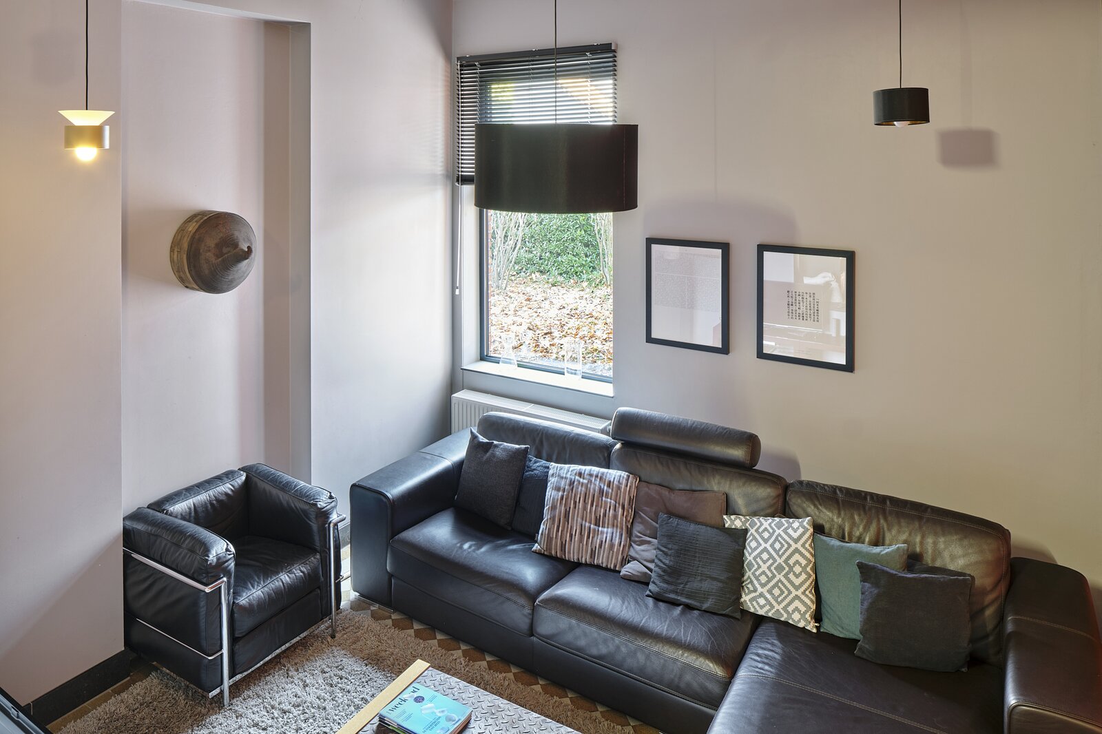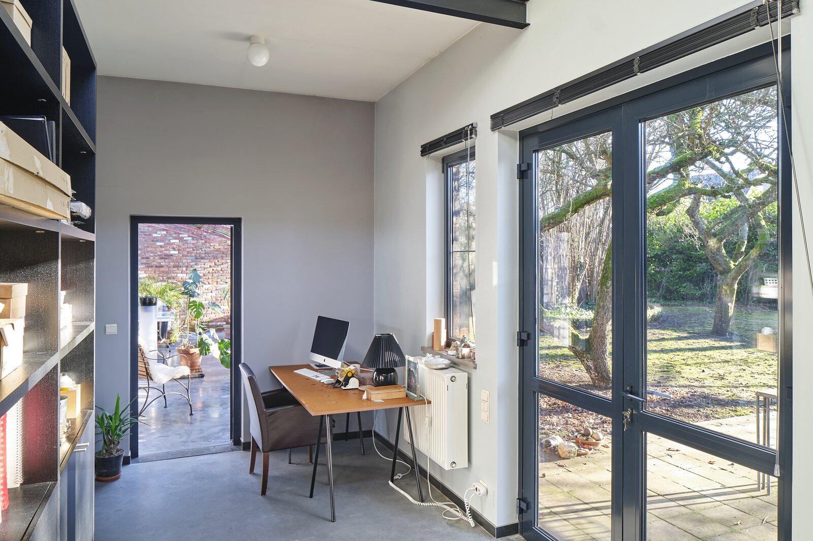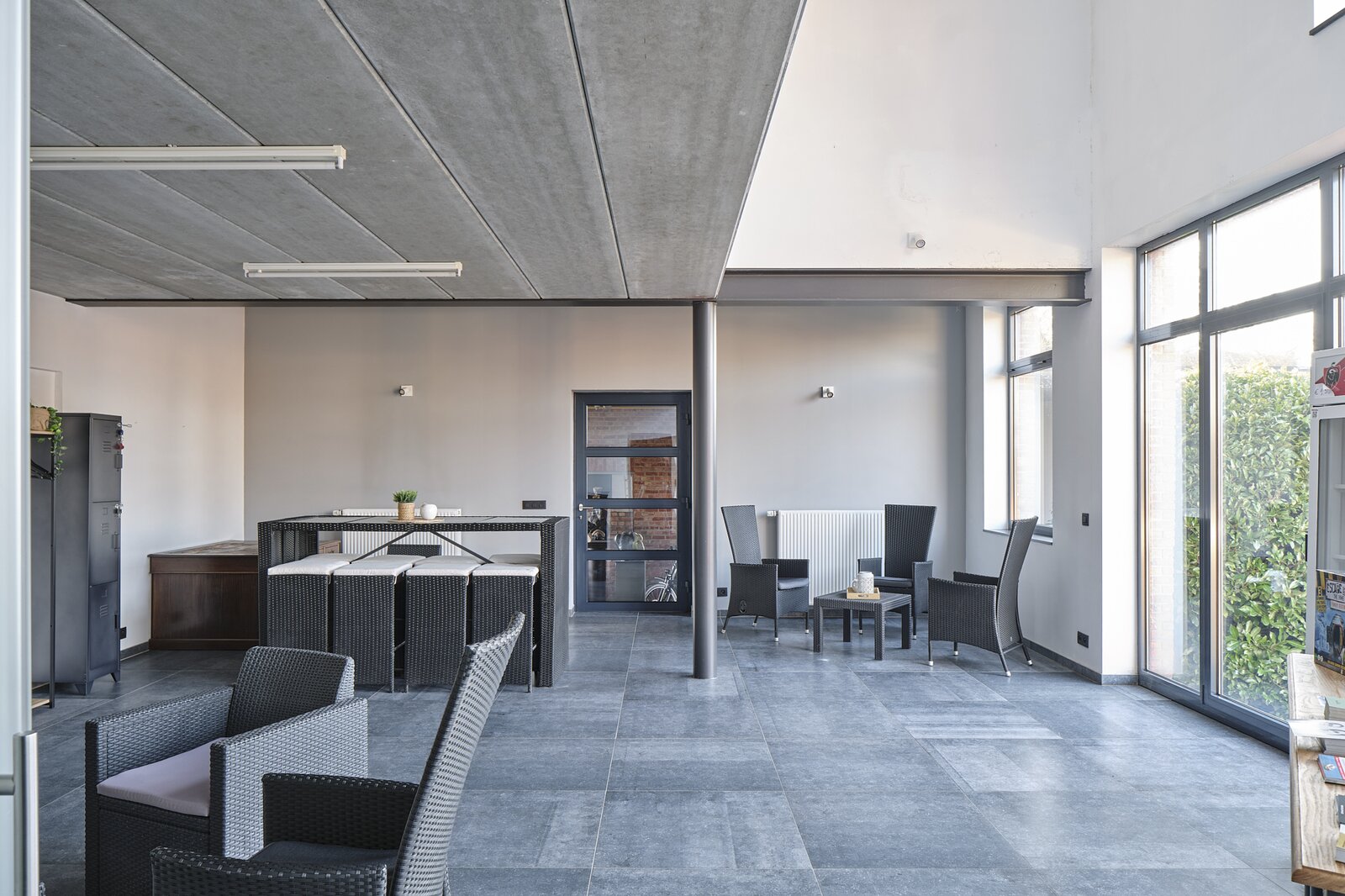 Verbouwing van historisch pand zijnde een voormalige industriële ‘Melkerij' uit 1920 en eigen woning van interior architect Flor Bernar. Resultaat is een ruim, stijlvol en modern polyvalent gebouw (bewoonbare opp 426 m²) op een mooi perceel (2.072 m²) omgeven door natuur met inclusief 2 organisch in het geheel geïntegreerde maar aparte comfortabele woningen. Indeling van de ruimtes is doordacht zowel stilistisch als qua maximale besteding van beschikbare oppervlaktes met veel oog voor functionaliteit en opbergmogelijkheden. Grote ramen trekken mooi gefilterd daglicht binnen en het geheel straalt rust en evenwicht uit. Modern wooncomfort in een gebouw met een diepe ziel. De 2 woonunits zijn ideaal naar invulling toe als kangoeroeconcept, combi wonen of een andere creatieve vorm van gemengd gebruik. Beide units zijn compact maar perfect in orde met telkens op de benedenverdiepingen keuken en leefruimtes en boven de slaapvertrekken (7 in totaal) en de badkamers (4 in totaal). Woning 1 heeft ook boven een zithoek/bibliotheek met zicht op groen. Woning 2 heeft aanpalend aan de leefruimtes een zeer mooie originele serre in smeedwerk die geïntegreerd is in de moderne architectuur. De grote polyvalente zaal is perfect in orde en zeer geschikt voor happenings, feesten of events. Beide woningen kunnen gebruik maken van een royaal en zeer aangenaam terras met vergezicht op de grote tuin en de omringende natuur. Voorts is er zowel aan voor- als zijkant ruime parkeergelegenheid. Heel veel mogelijkheden hier voor uitsluitend privé in verschillende varianten maar zeker ook voor een mix privé met een stijlvolle commerciële uitbating of uiteraard ook als project voor creatieve ondernemers en slimme investeerders. Vlotte verbinding met hoofdwegen. Voorzieningen en dorpskern vlakbij in het prachtige kader dat De Kempen heet met onbeperkte mogelijkheden voor natuurwandelingen, recreatie, sport, rust en het goede leven. Opportuniteit.
