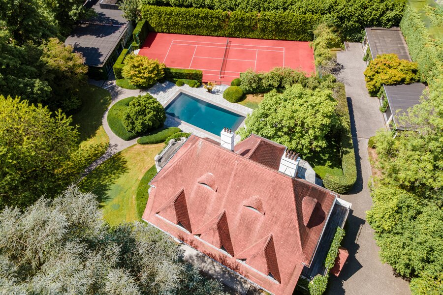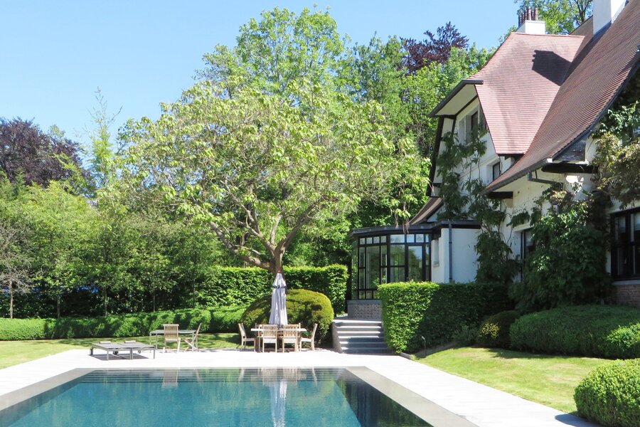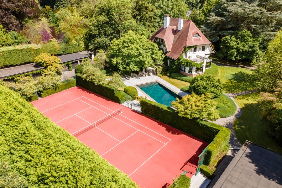 A la Petite Espinette, superbe propriété 1907, +/- 800 m², de l'architecte Bodson (disciple d'Horta) alliant le charme normand à l'art nouveau dans un magnifique parc de +/- 70 ares aux arbres centenaires. La villa principale, repensé par l'architecte d'intérieurs Cavadias, offre de très grandes réceptions, une somptueuse cuisine, 4 chambres dont une gigantesque suite parentale, 4 bains. Conciergerie indépendante (séjour, 2 chambres + bain). Studio indépendant, Salle de sport. Piscine. Garage 6 voitures. PEB E