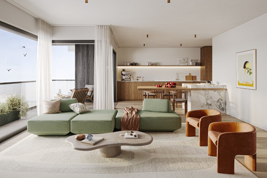 - Espaces de vie spacieux et lumineux grâce à de grandes baies vitrées.
