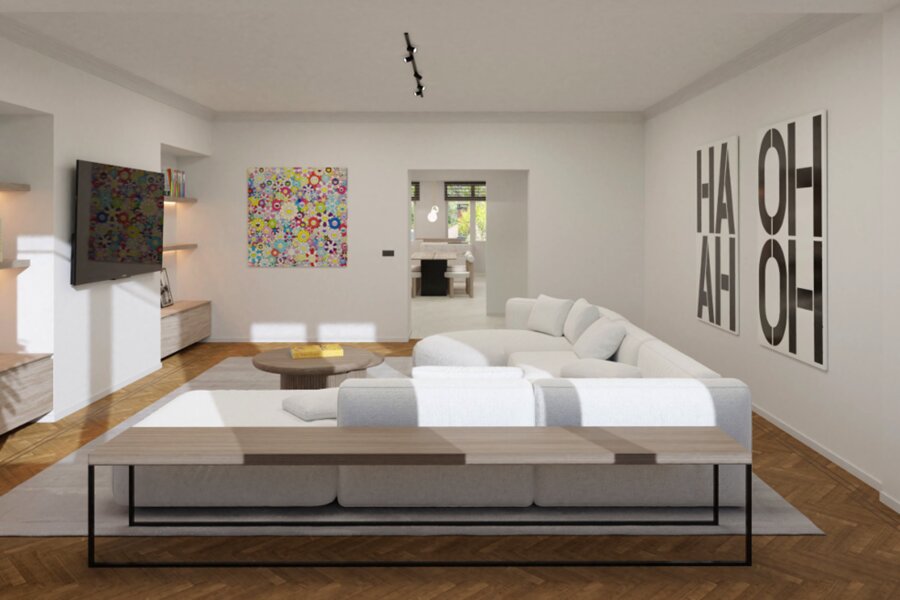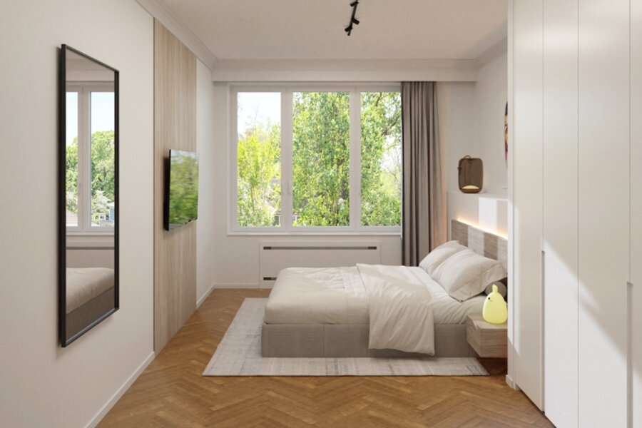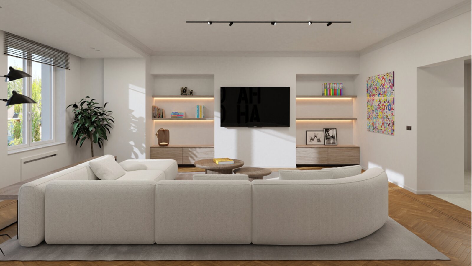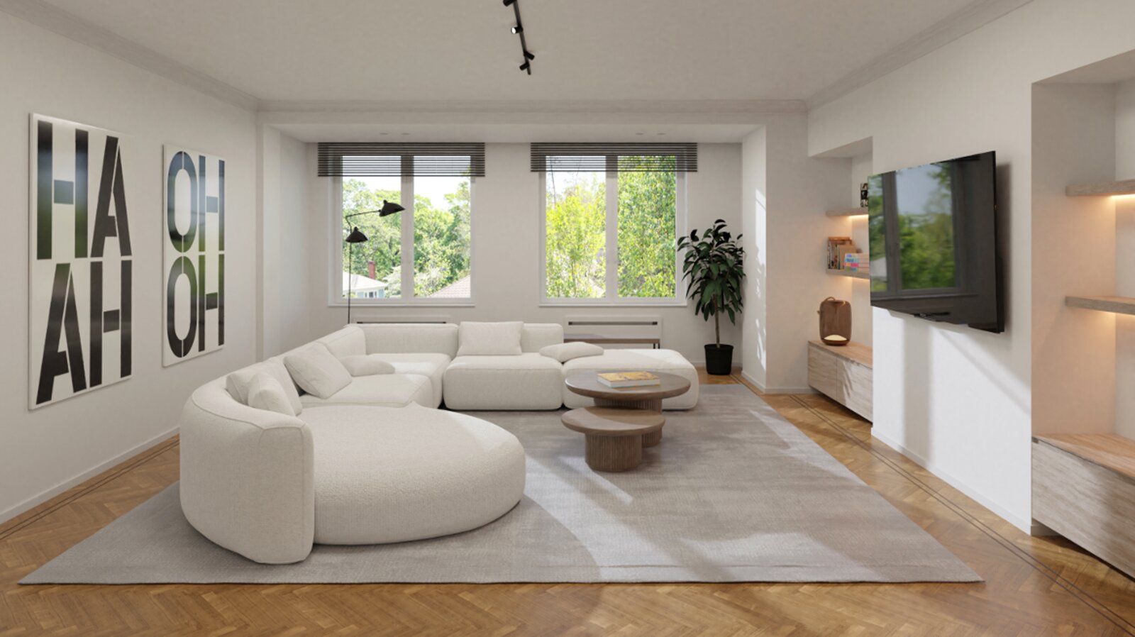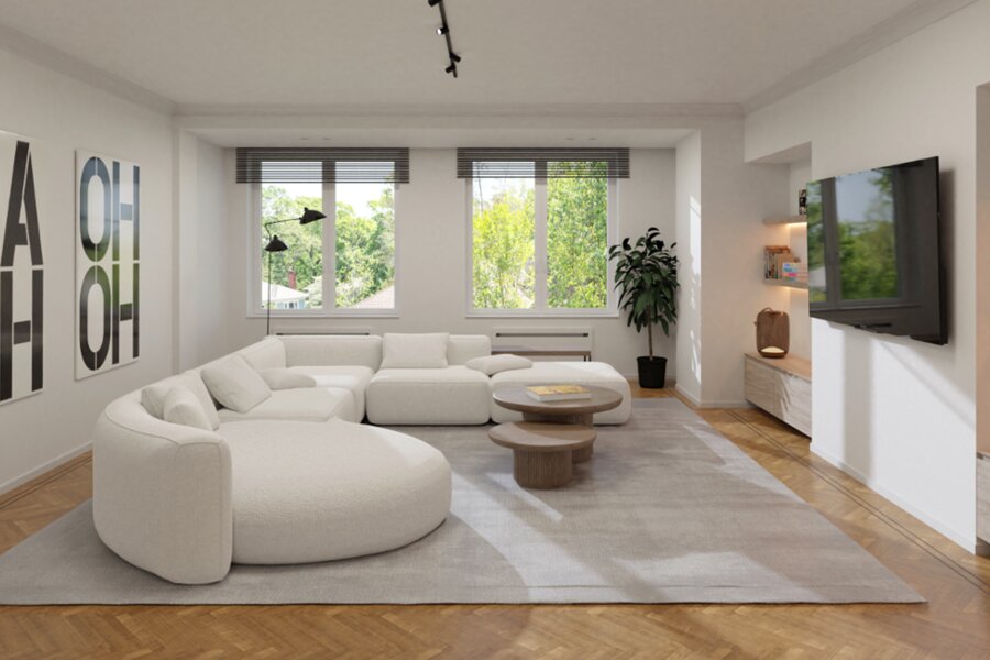 Situé dans un immeuble de standing de 1961, à deux pas de Montgomery et du Collège Saint-Michel, cet appartement de ± 155 m² a été entièrement rénové en profondeur avec des matériaux de qualité et un grand souci du détail.