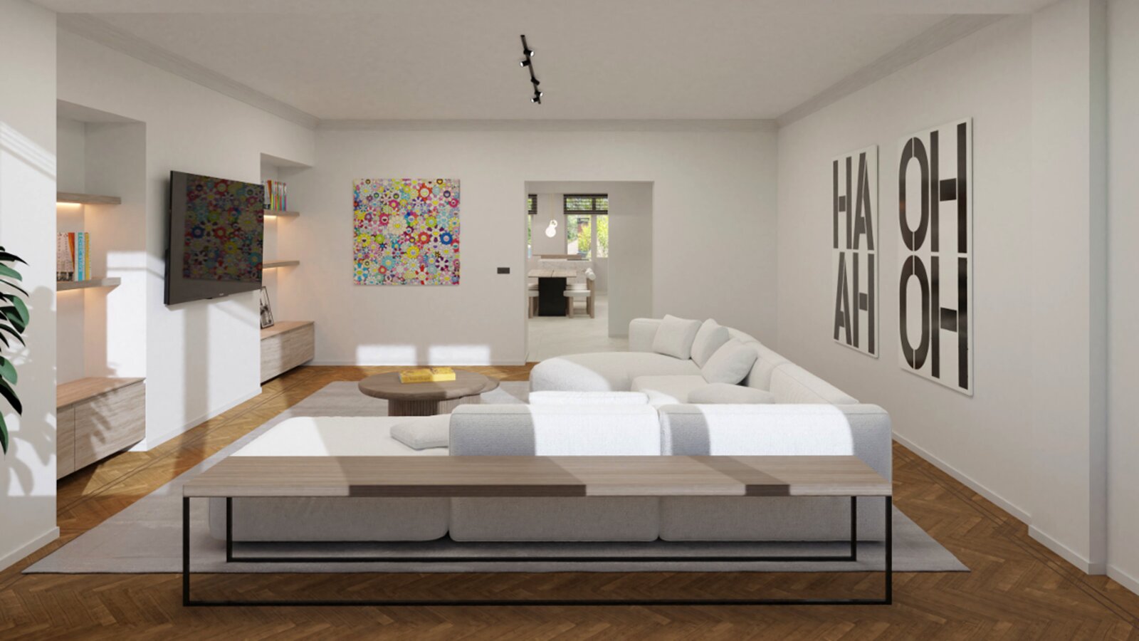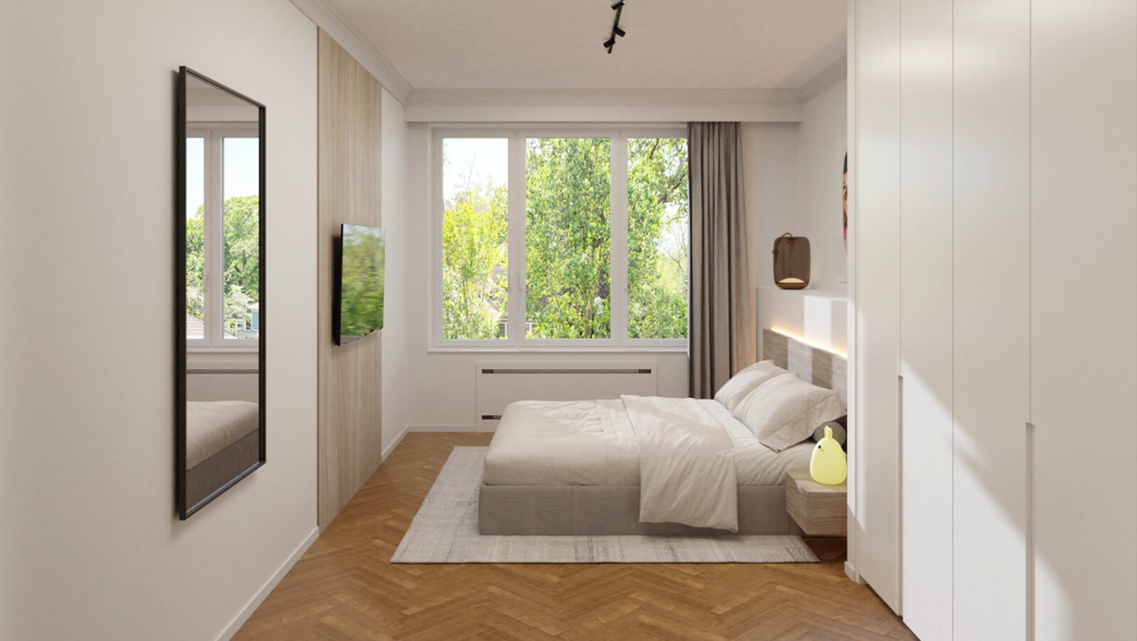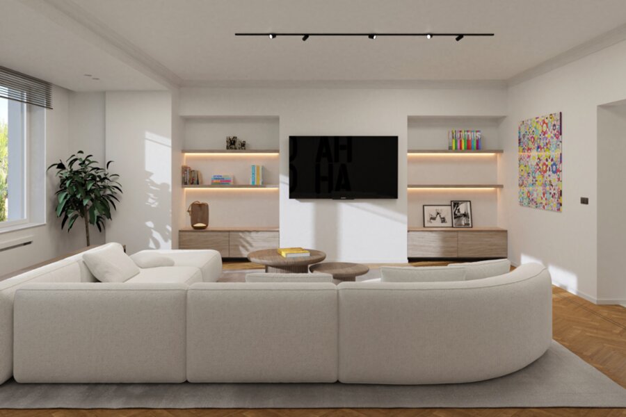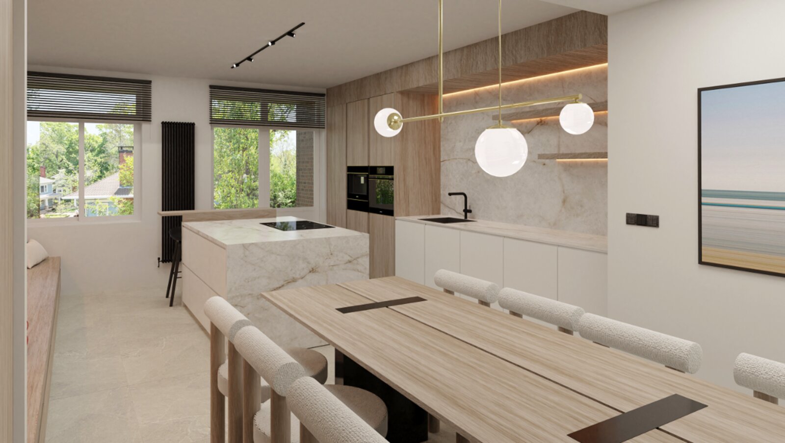Situé dans un immeuble de standing de 1961, à deux pas de Montgomery et du Collège Saint-Michel, cet appartement de ± 155 m² a été entièrement rénové en profondeur avec des matériaux de qualité et un grand souci du détail.