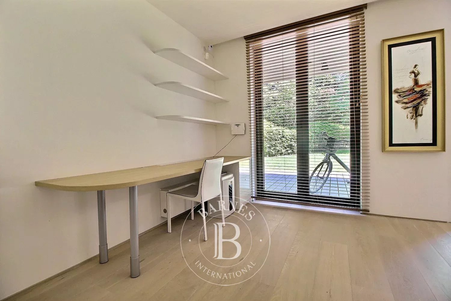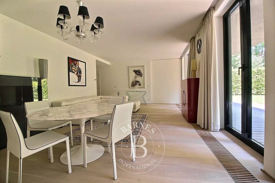 Le bien se compose d'un hall d'entrée avec toilette et vestiaire, d'agréables réceptions avec larges baies vitrées donnant accès à la terrasse 80m2 et au jardin 200m2, d'une cuisine hyper-équipée, d'une chambre principale avec salle de bains/douche/toilette et dressing en suite, de deux chambres et d'une salle de douche séparée, d'une buanderie et d'un local technique.