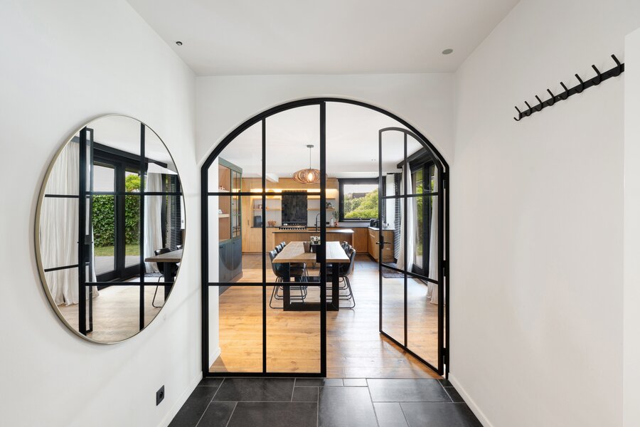 Composition : hall d'entrée avec vestiaire et toilettes. Très spacieux et lumineux séjour avec cheminée. Salle à manger donnant sur la terrasse et le jardin. Cuisine ouverte luxueusement équipée avec îlot central et tous les appareils électroménagers modernes. Buanderie/arrière-cuisine. Garage pour une voiture avec porte automatique. Parking extérieur. À l'étage : suite parentale avec dressing et baignoire indépendante. Deux chambres à coucher complètes. Grande salle de douche avec toilettes. Terrasse et jardin orientés sud-ouest. Visites volontiers après rendez-vous en un de nos bureaux.