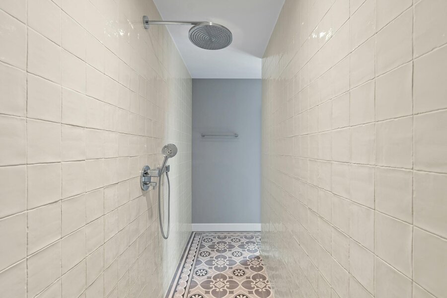 - salle de bain au rez-de-chaussée avec toilettes et douche