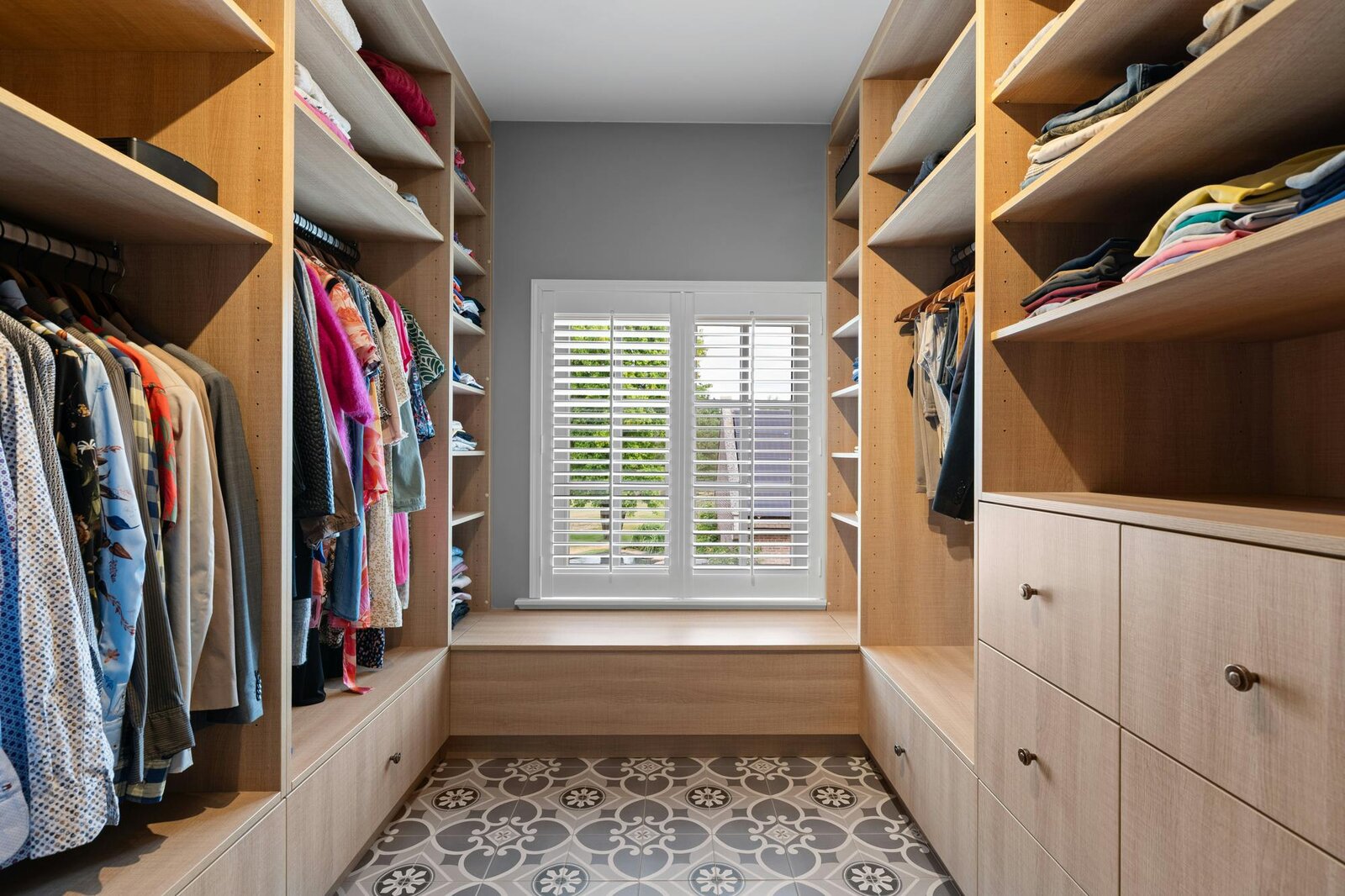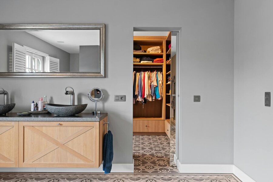 - salon spacieux sur parquet avec de nombreux placards sur mesure