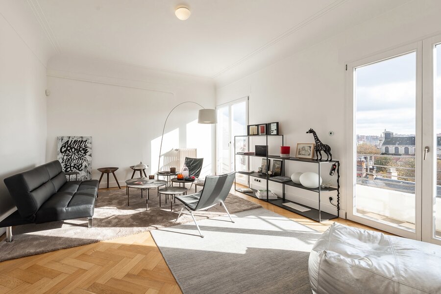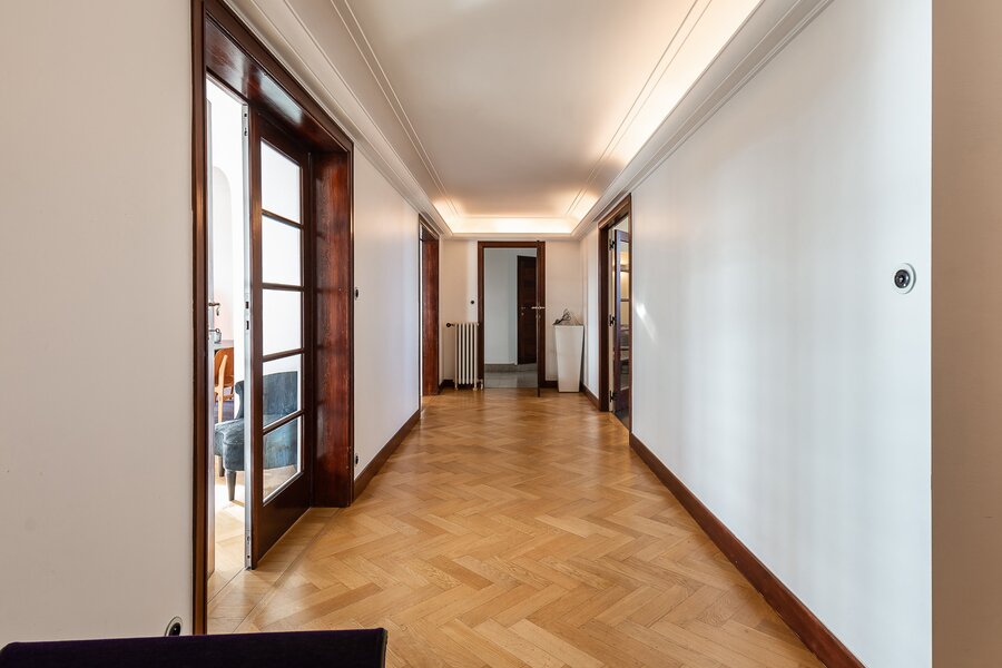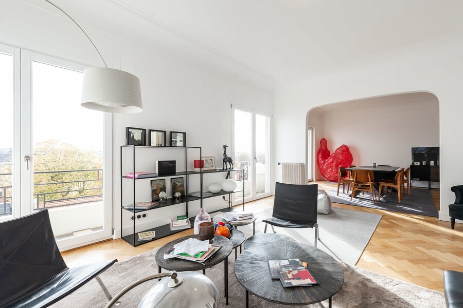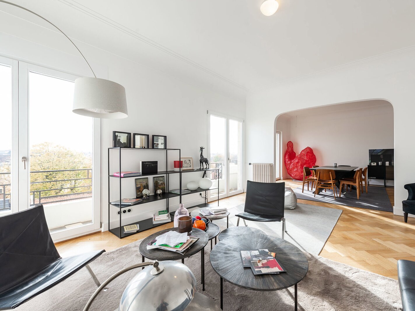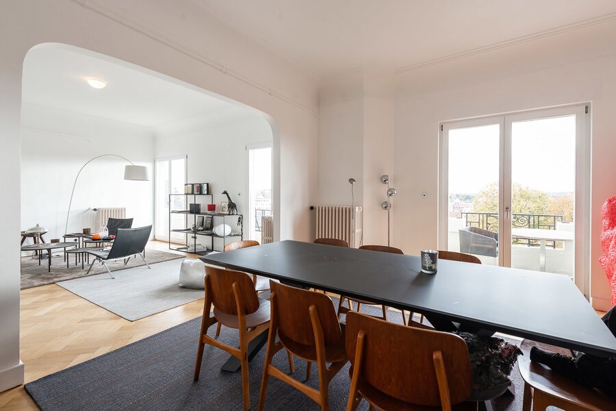 Disposant de vues dégagées sur le Châtelain d'un côté et le centre ville de l'autre, l'appartement se compose d’un vaste hall d'entrée menant au séjour, d'une cuisine entièrement équipée ouverte sur la salle à manger. Le côté nuit est organisé en trois parties distinctes: la chambre des maîtres possède sa salle de bains et son dressing privatif, une aile de l'appartement est composé de 2 chambres et de 2 salles de bain et l'autre aile de 2 chambres supplémentaires avec une salle de bain.