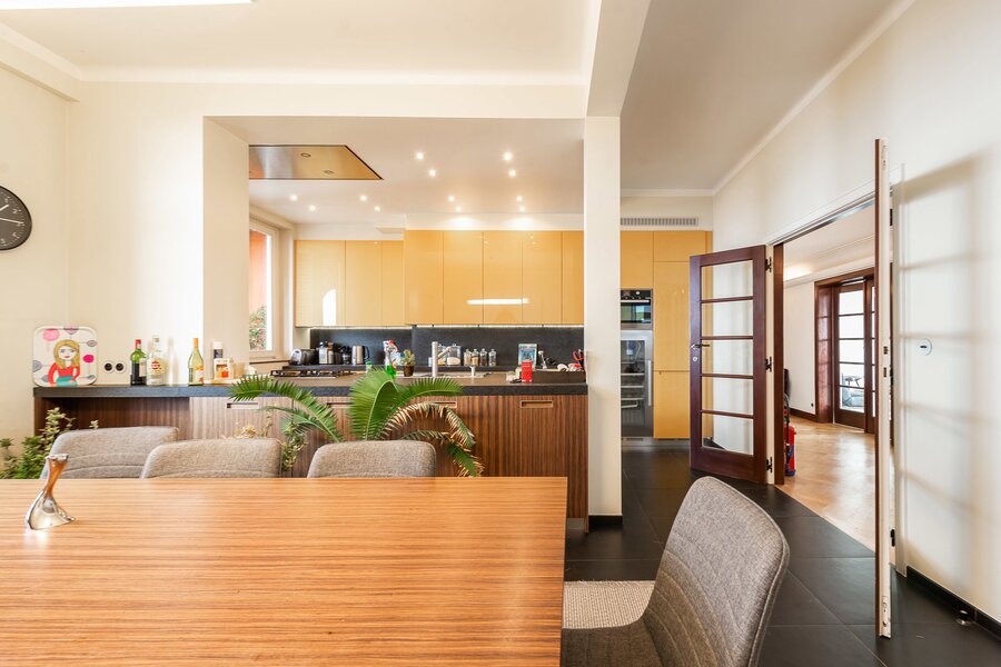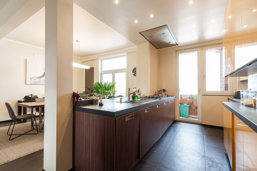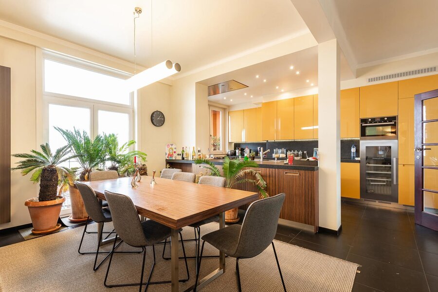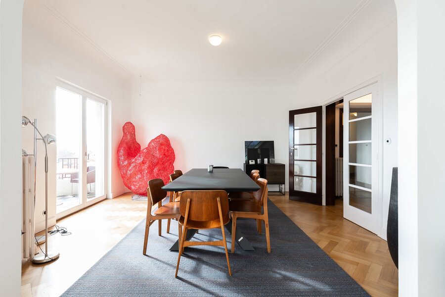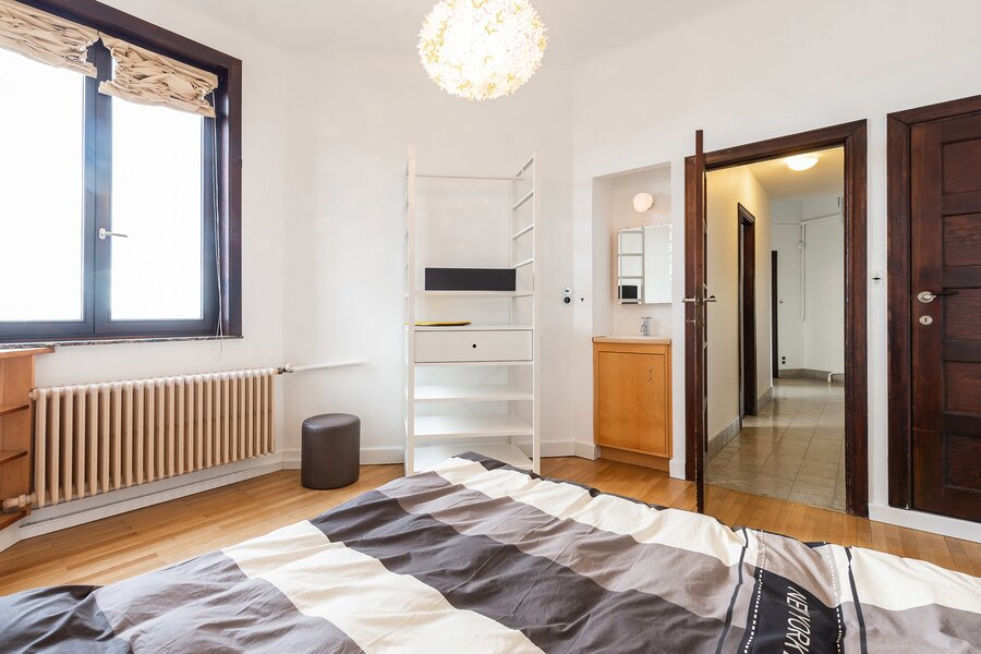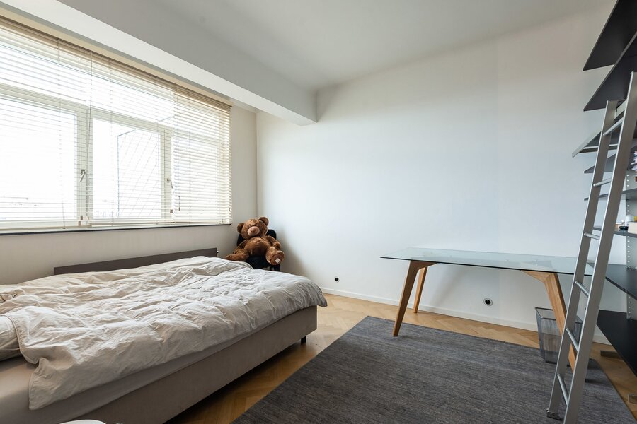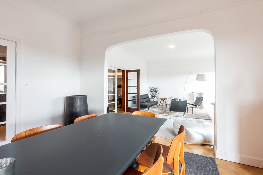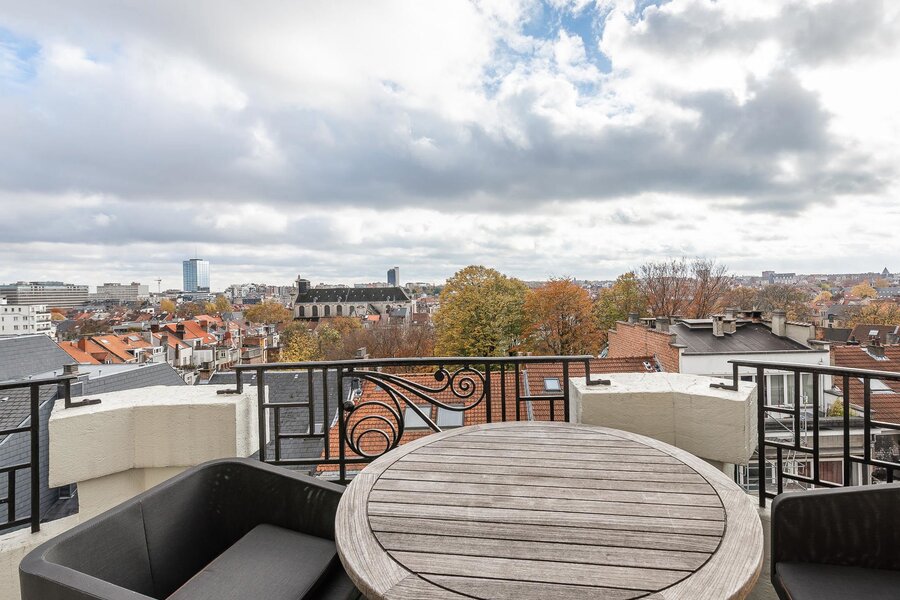 En plein cœur du quartier du Châtelain, dans un immeuble Art-Déco de 1946 conçu par l'architecte Camille Damman, penthouse d’une superficie habitable de ± 286 m² brut (selon PEB). Il offre cinq chambres et plusieurs terrasses.
