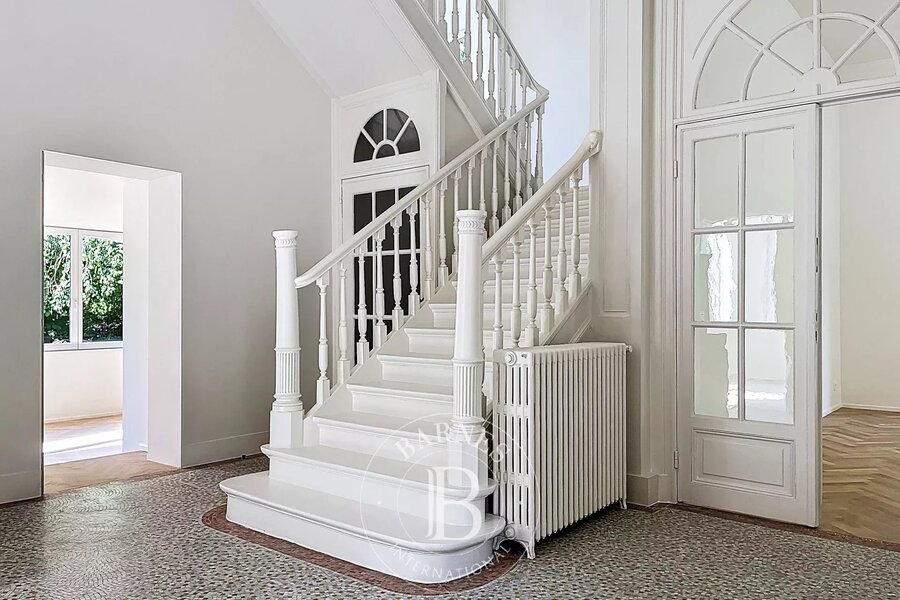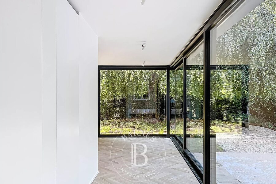 Portail électrique à l'entrée de la propriété, ascenseur, alarme, ventilation double flux font partie des conforts contemporains incorporés lors de la rénovation en profondeur.