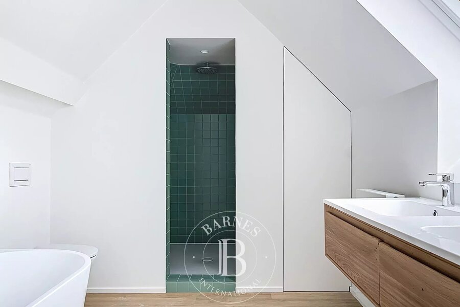 Deux chambres secondaires avec salle de douche et toilette se trouvent aux entresols de la cage d'escalier.