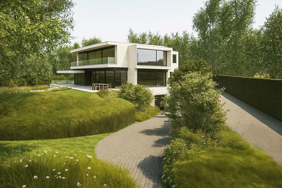 Dans une rue recherchée de Rhode-Saint-Genèse à la limite d' Uccle, avec vue sur les champs, nouvelle villa contemporaine signée par l'architecte Marc Corbiau développant une superficie brute de ± 1.031 m² sur un magnifique terrain arboré de 41 ares réalisé par Piet Blanckaert et disposant d'une piscine intérieure et extérieure.