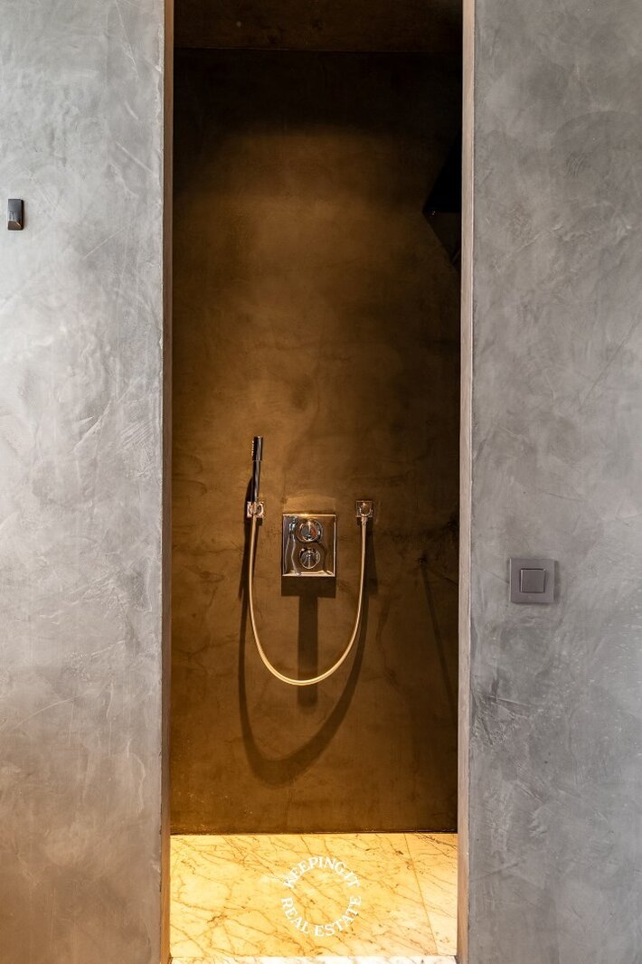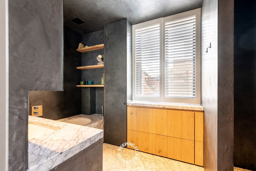 Op één van de mooiste locaties in het historisch centrum van Brugge bevindt zich deze hoogwaardig gerenoveerde stadswoning met garage. Een totale renovatie in 2014–2015 met oog voor kwaliteit, integriteit en maatwerk in elk detail. De architectuur is hedendaags maar warm, met natuurlijke materialen als barnwood, massieve eik en verschillende soorten marmer (waaronder Noir Saint Laurent en Carrara CD). Subtiele contrasten, verfijnde texturen en een coherent lijnenspel bepalen de sfeer. Vloerverwarming op ieder verdiep, een Cosyflame-gashaard, shutters en een uitgepuurd lichtplan.