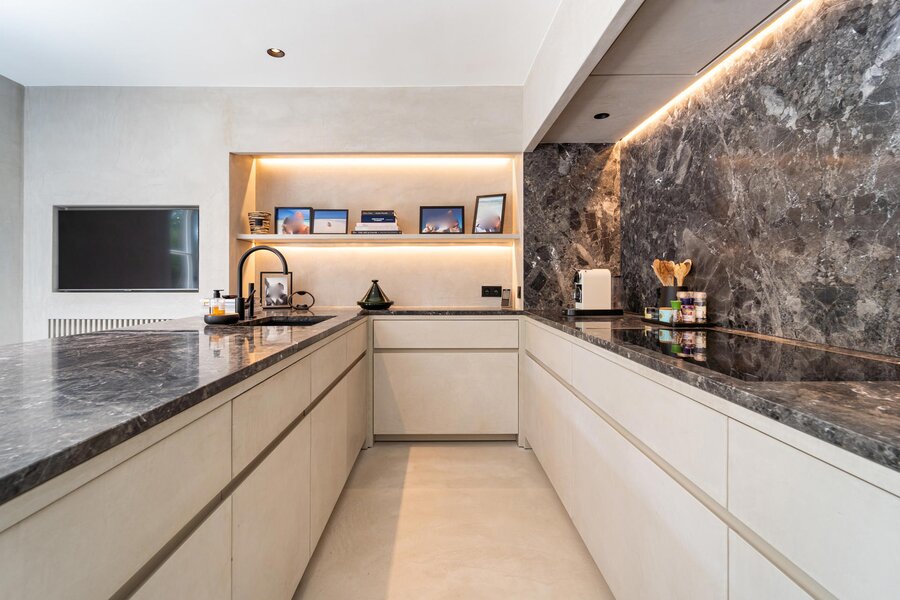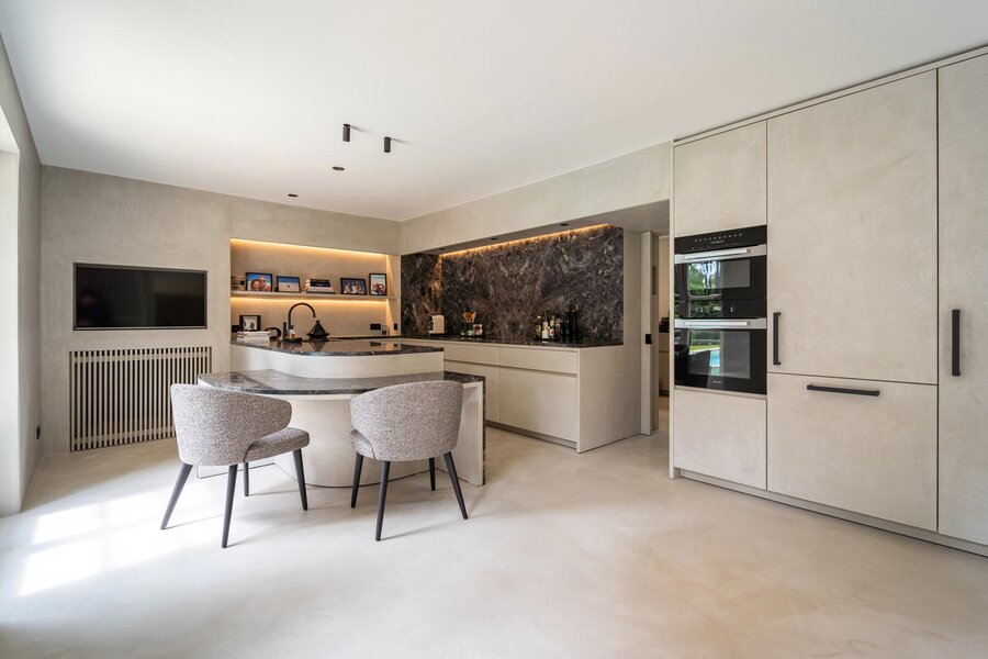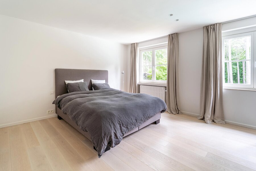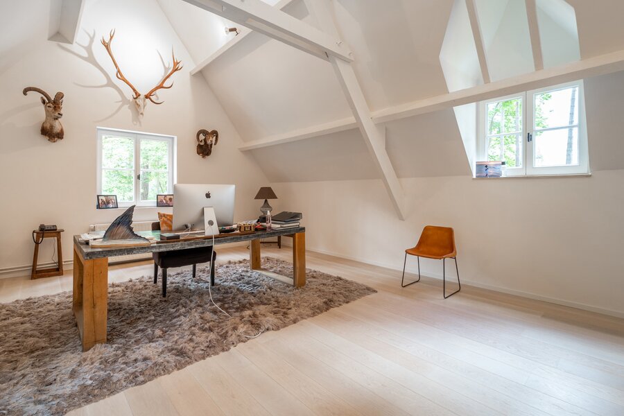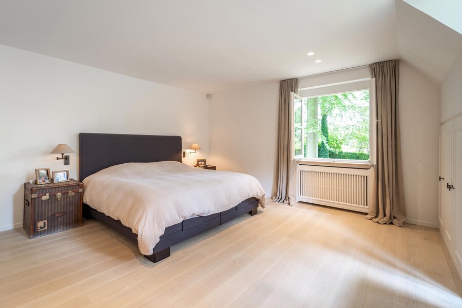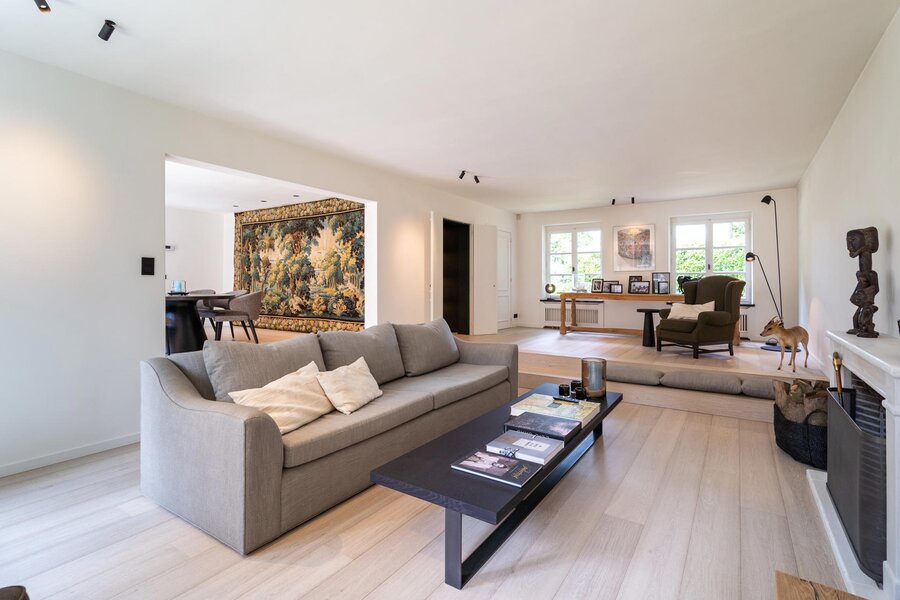 L’ensemble des éléments réjouit le regard et la mémoire : matériaux de qualité, équilibre des volumes, lumière et caractère définissent les rénovations sur l’ensemble des pièces. Au rez de chaussée, on notera un salon de ± 45 m² avec un feu ouvert et coin bureau, une salle à manger de ± 22 m², une cuisine hyper équipée additionnée de son arrière cuisine pour un total de 40 m² ainsi qu’un double garage avec coin buanderie. A l’étage, on relève une chambre des maîtres avec sa salle d’eau pour un total de ± 40 m², 3 autres chambres, une salle de douche et une grande pièce avec annexe attenante (destination multiple / possibilité conciergerie).