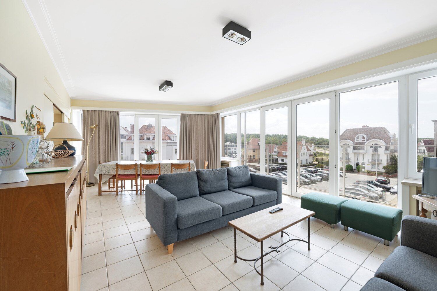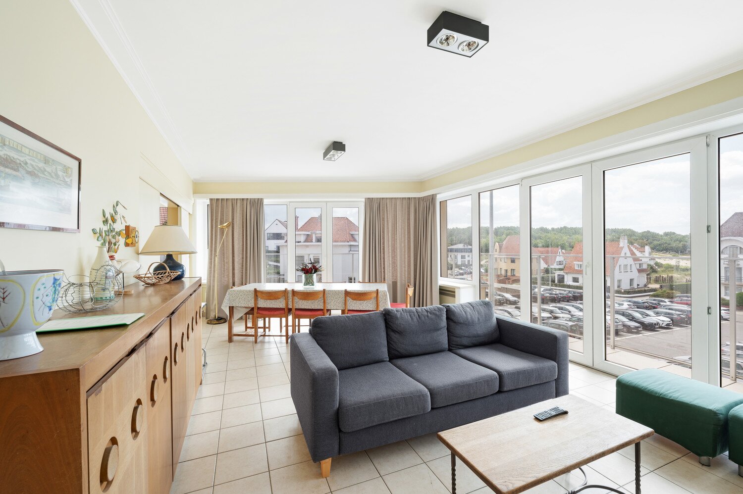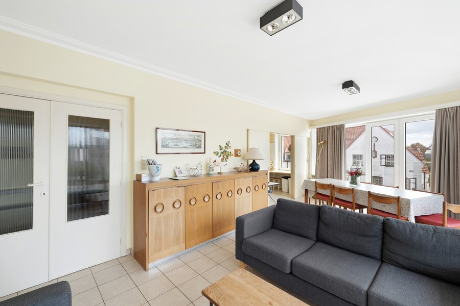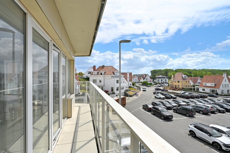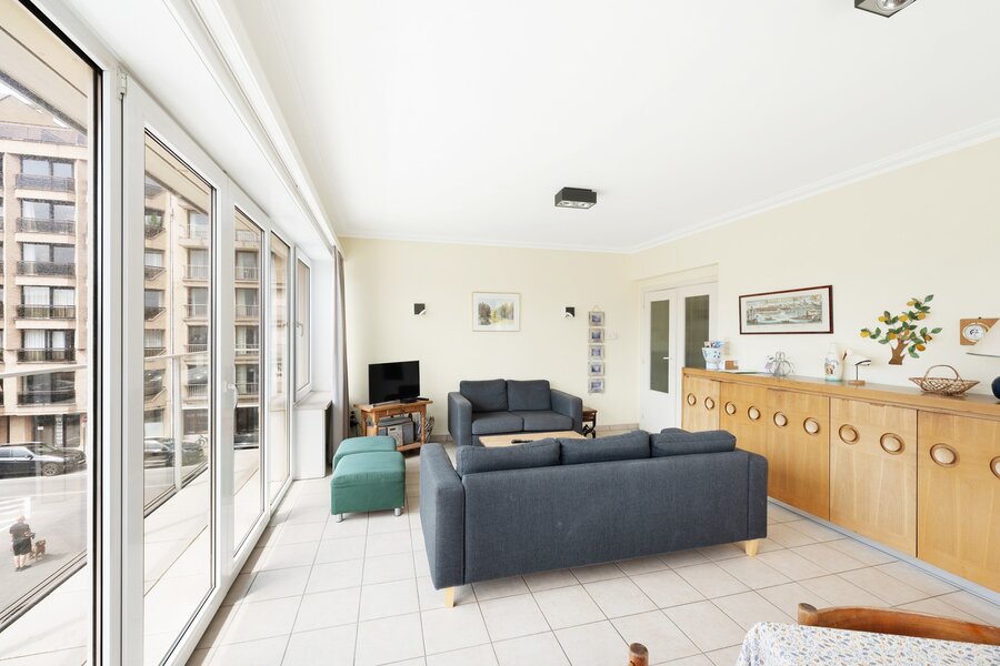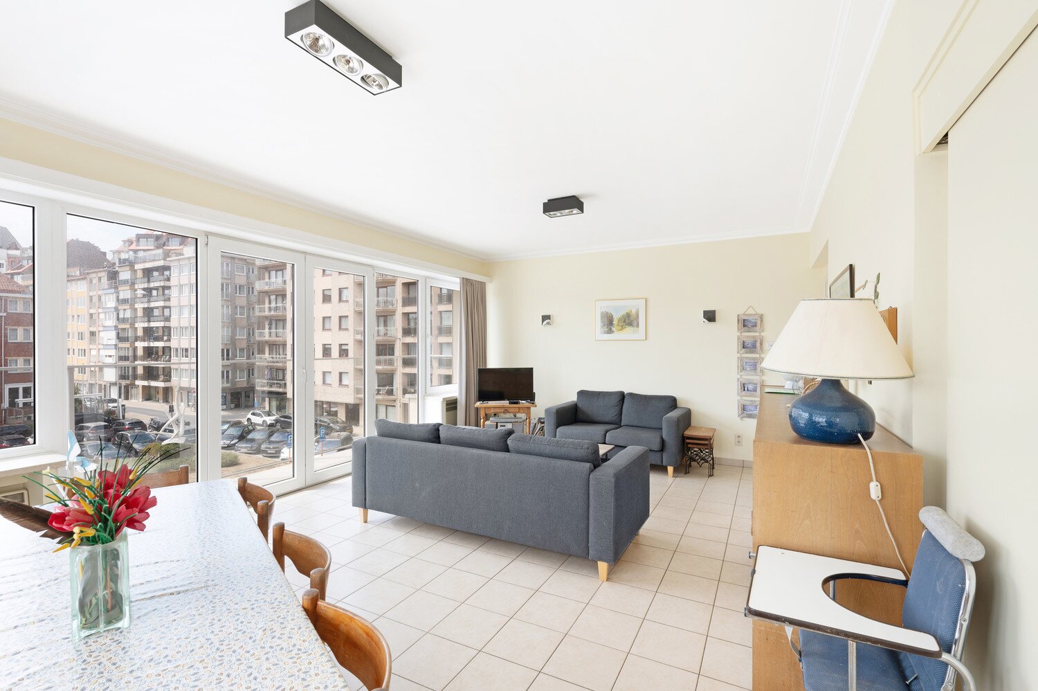 Op slechts 100 meter van het strand bevindt zich dit ruim hoekappartement op de tweede verdieping van een verzorgde residentie in het hart van Duinbergen.