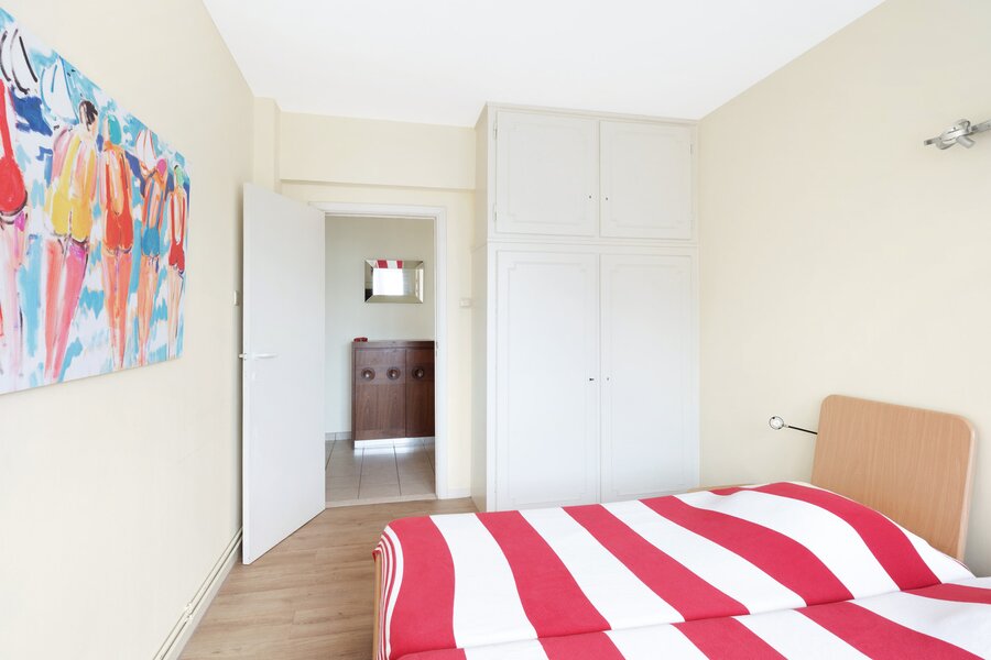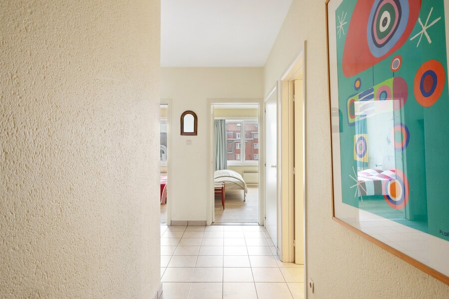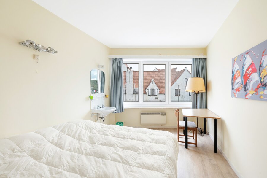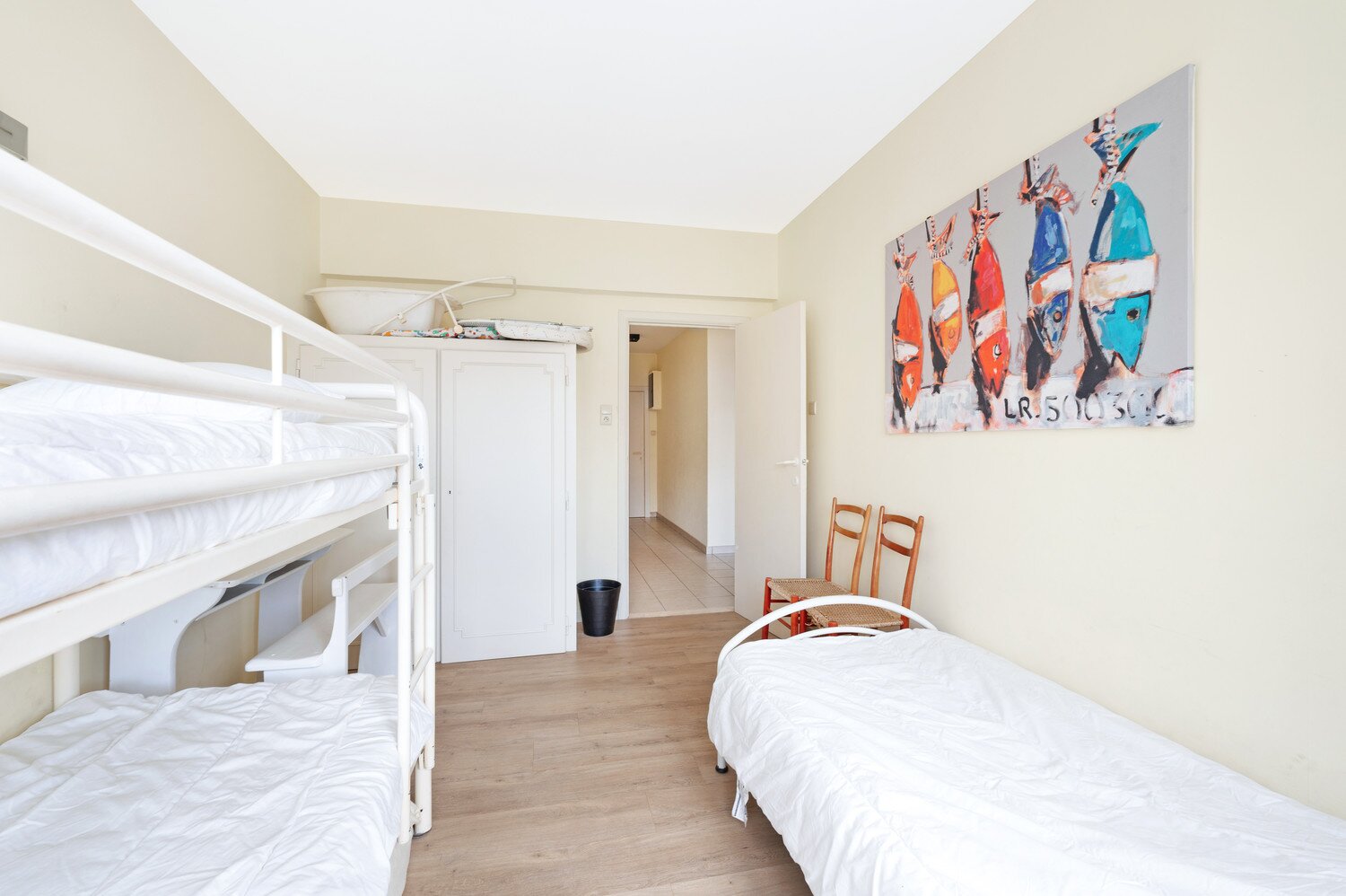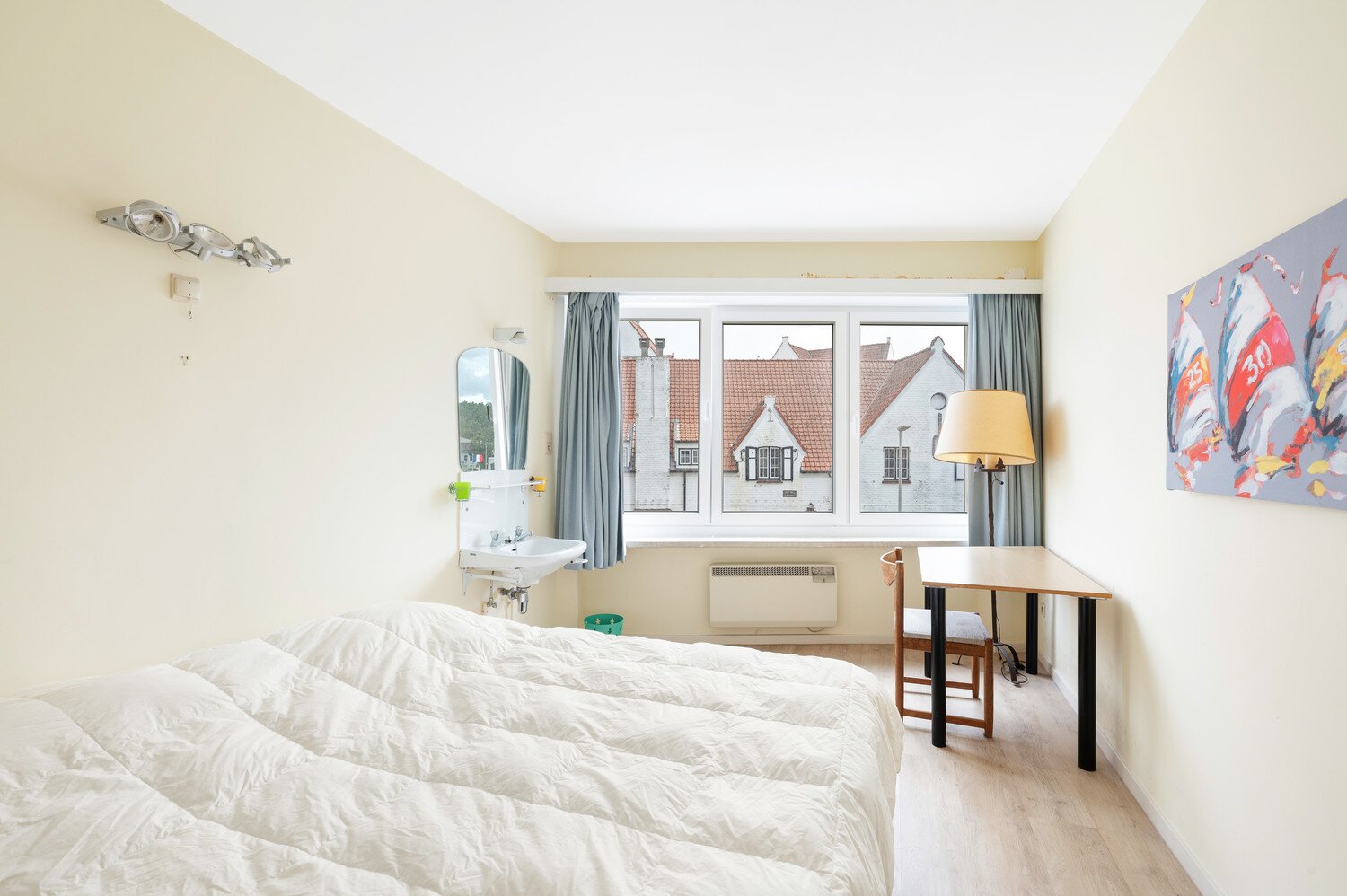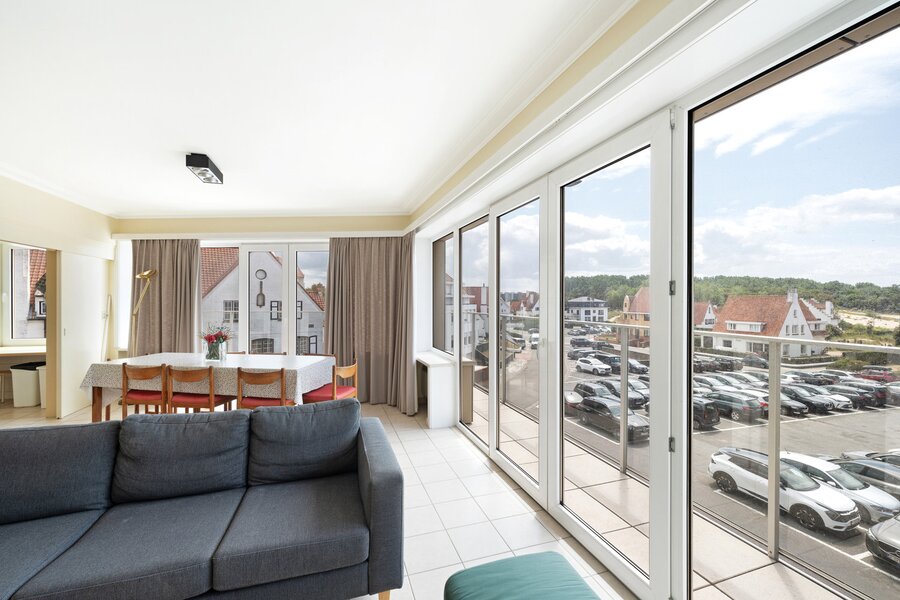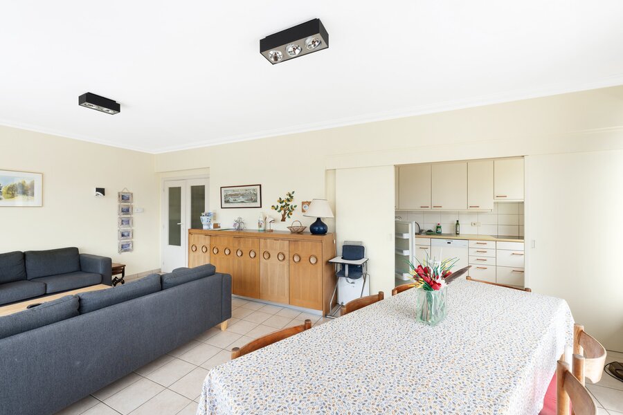 Op slechts 100 meter van het strand bevindt zich dit ruim hoekappartement op de tweede verdieping van een verzorgde residentie in het hart van Duinbergen.