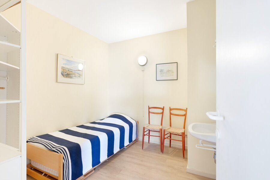 De indeling omvat vijf slaapkamers, een badkamer en een douchekamer, een zonnig terras, aparte keuken, inkomhal en gastentoilet.
