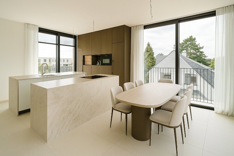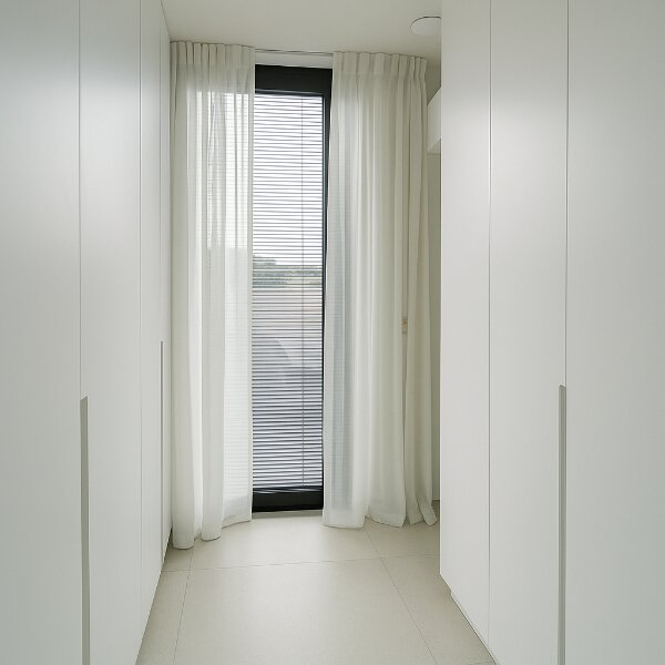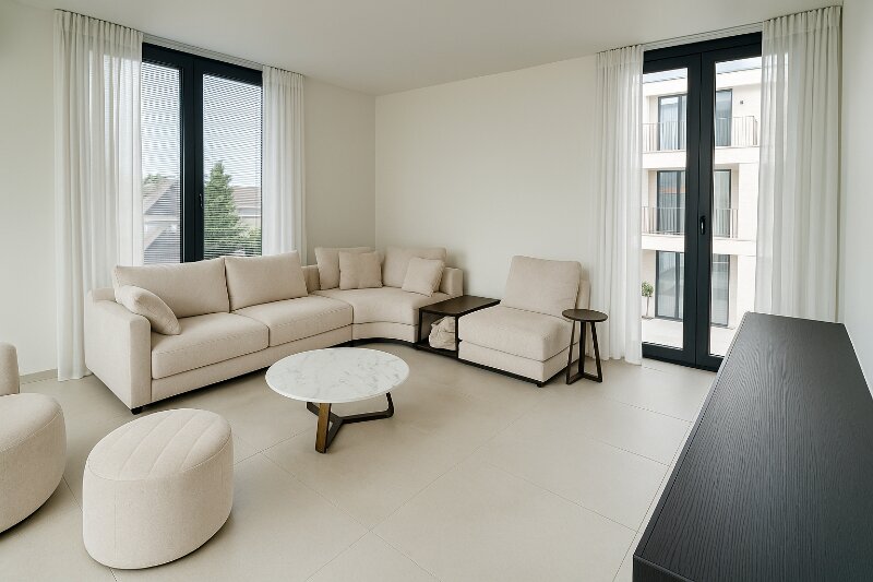 Luxe afwerking en volledig instapklaar met schilderwerken, gordijnen en verlichting.
