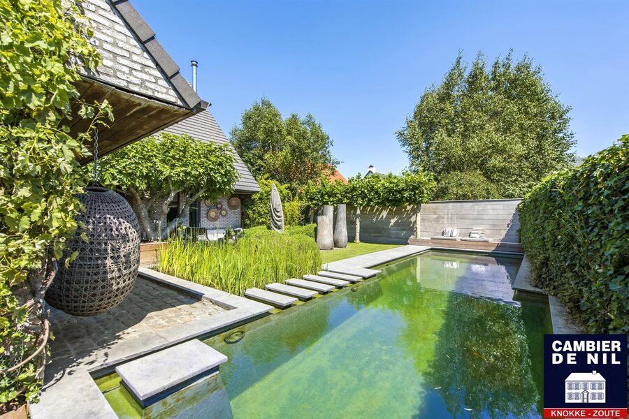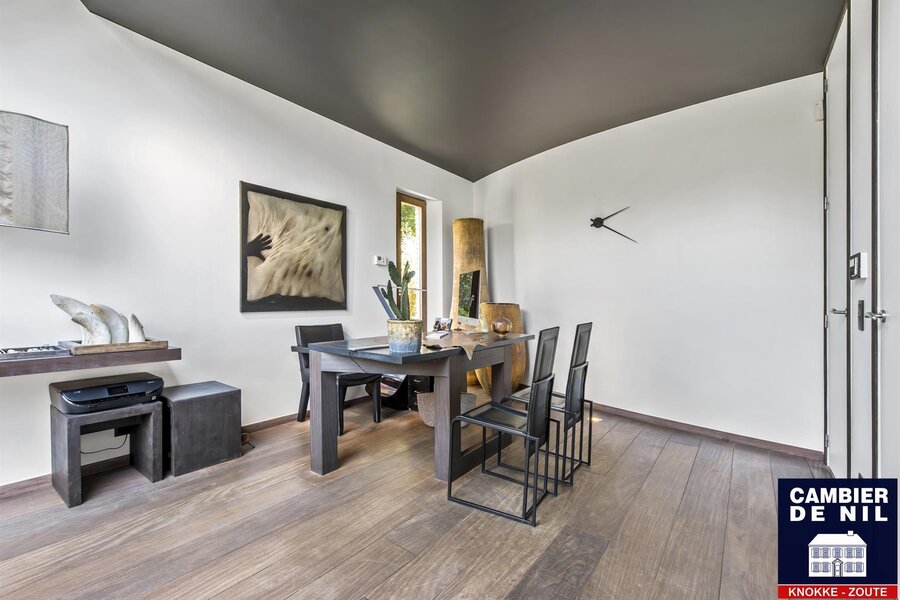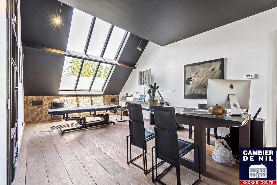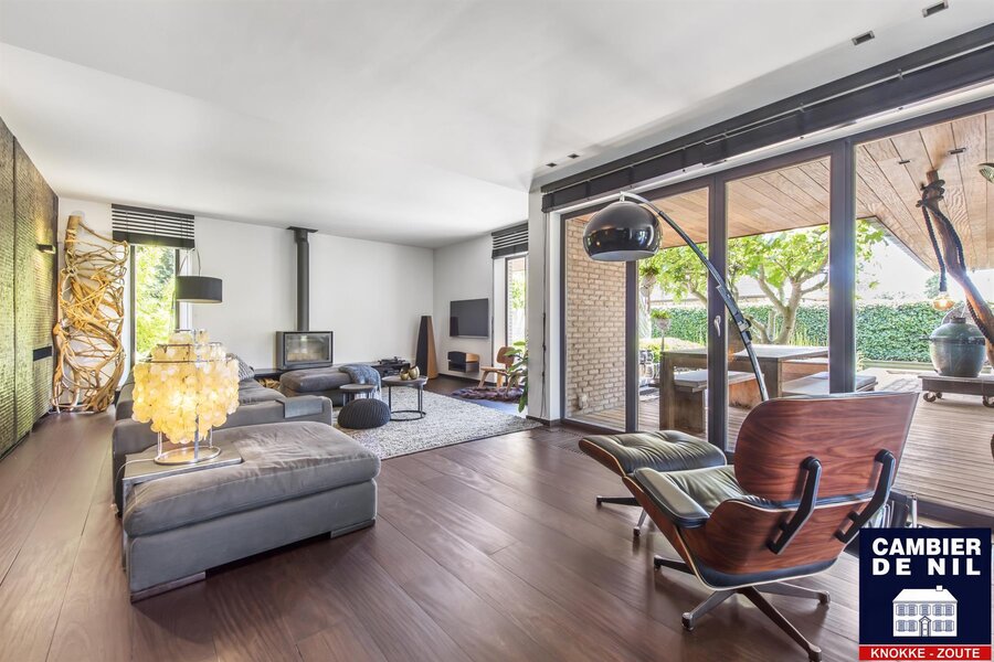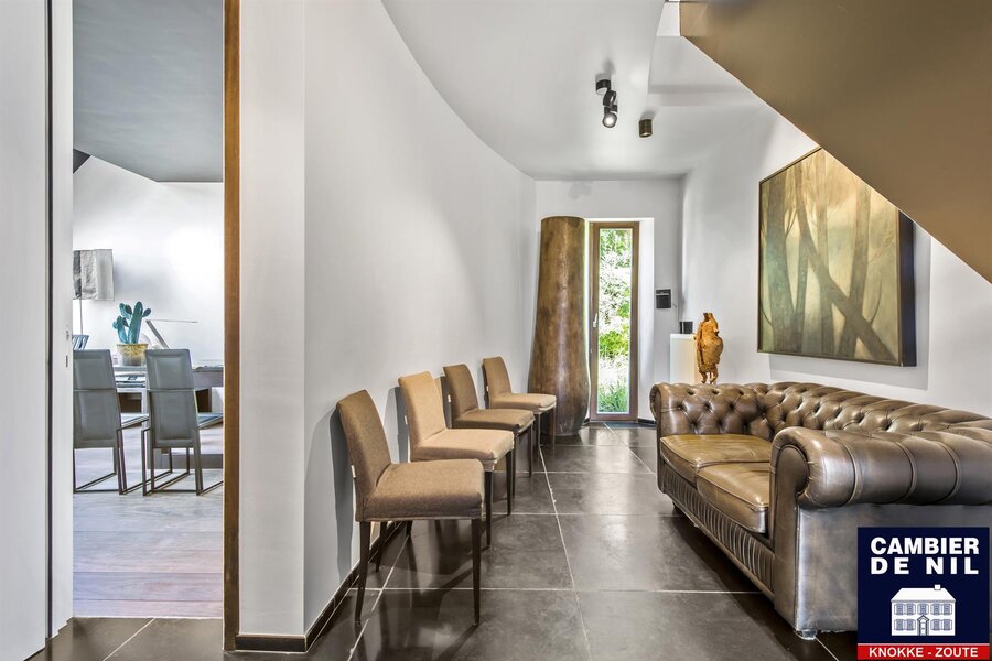 Maison d’architecte – Spacieuse villa offrant des prestations exceptionnelles pour profession libérale, avec magnifique jardin de vie orienté sud. Situation de premier ordre dans un quartier résidentiel calme, à quelques minutes du Zoute.
