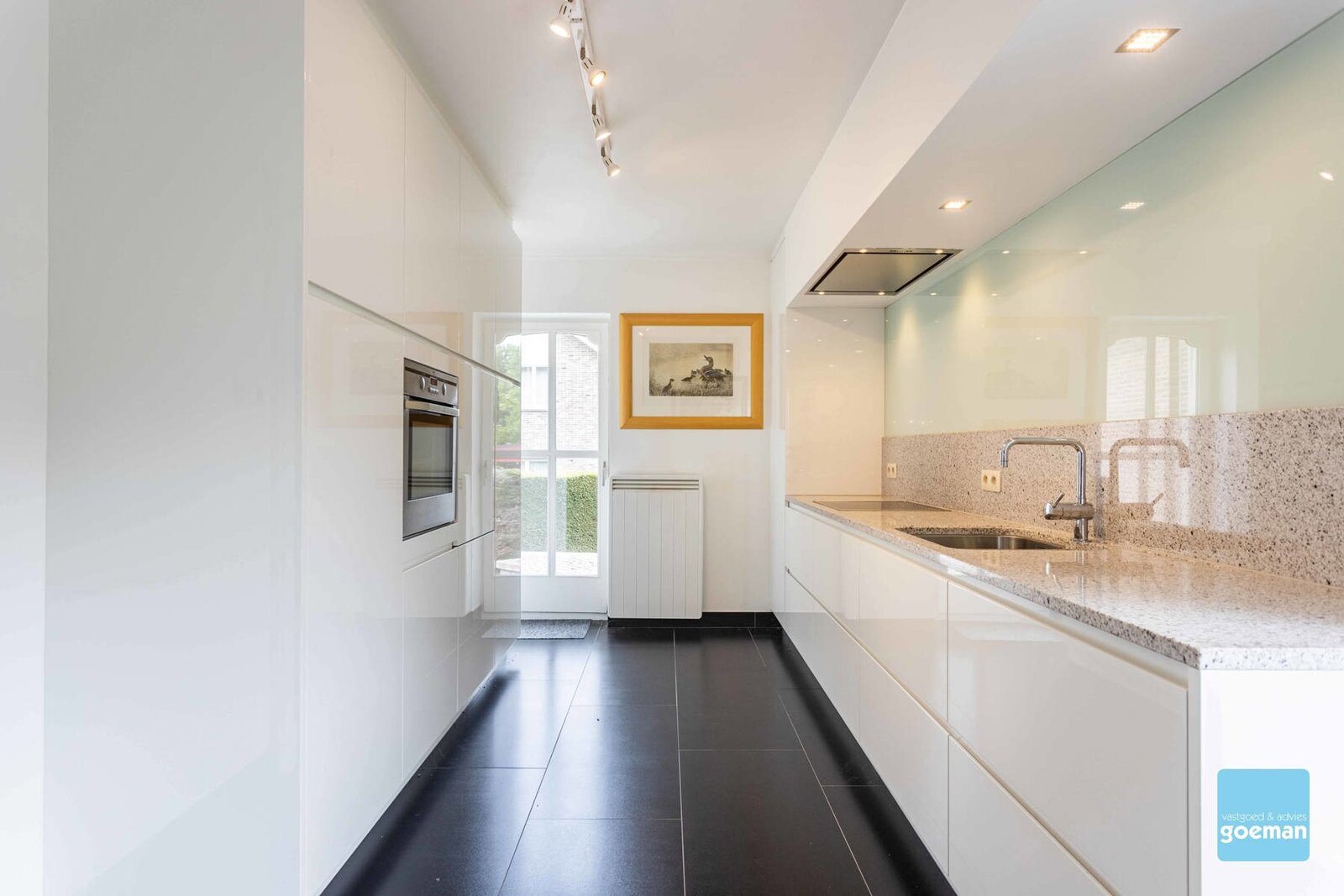 Volledig uitgeruste keuken met zicht op de tuin