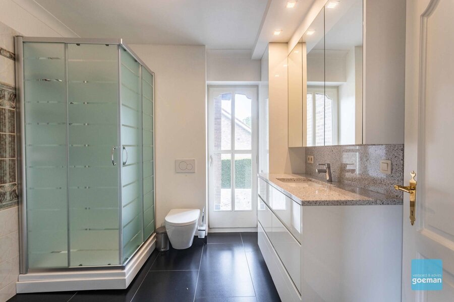 Aansluitend bevindt zich de eerste badkamer met douche