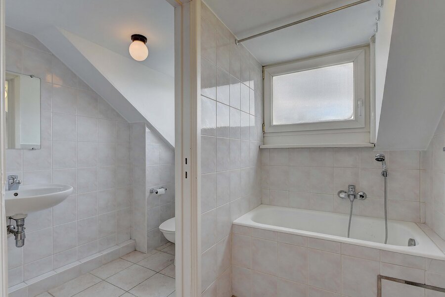Niv +2: hall de nuit, trois chambres, débarras, salle de bains avec lavabo, baignoire et WC. Il y a également un grenier séparé.