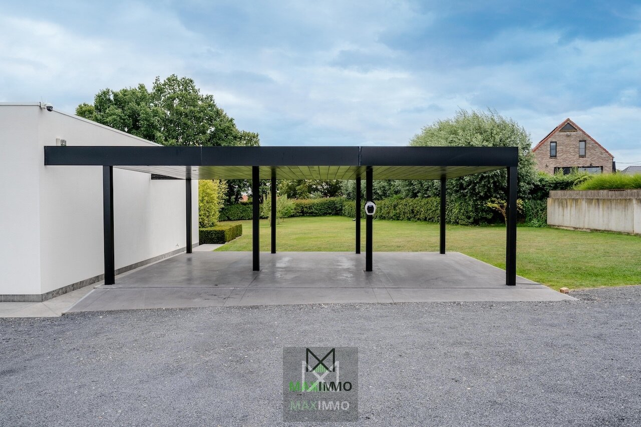 En plus de la propriété spacieuse, il y a plusieurs extras, y compris une grande piscine, un carport pour trois voitures avec une station de recharge, et un parking pour plus de 10 véhicules. La terrasse partiellement couverte avec vue sur le jardin et le Kemmelberg rend l'extérieur encore plus agréable.