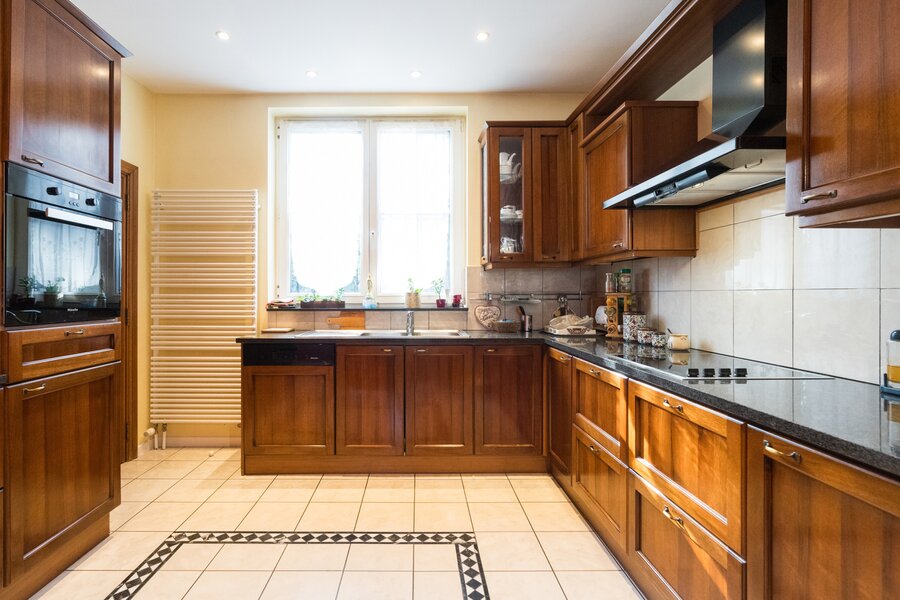 Cuisine de 1995 avec coin à déjeuner ( 16m²) - carrelage au sol
