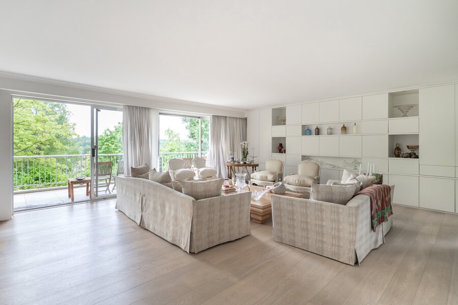 Victoire-Junot vous propose ce superbe appartement 4 façades intégralement rénové d'une superficie de ± 305m² + terrasse et studio indépendant. Située dans une une rue élégante et arborée du quartier du Prince d'Orange à proximité des champs de Percke, il se présente comme suit: Vaste hall d'entrée avec vestiaire et cabinet de toilettes, superbes réceptions (± 75m²) baignées de lumière donnant accès à la terrasse profitant de magnifiques vues dégagées sur la nature environnante, salon tv ± 25m², cuisine entièrement équipée, 4 chambres dont une master bedroom avec salle de bains attenante, 2 salle d'eau supplémentaire. Au rez-de-chaussée: chambre indépendante avec salle d'eau (idéal pour du personnel, bureau ou chambre d'invités), une grande cave, deux emplacement de parking obligatoires (60.000 euros). Espace détente commun. PEB E+