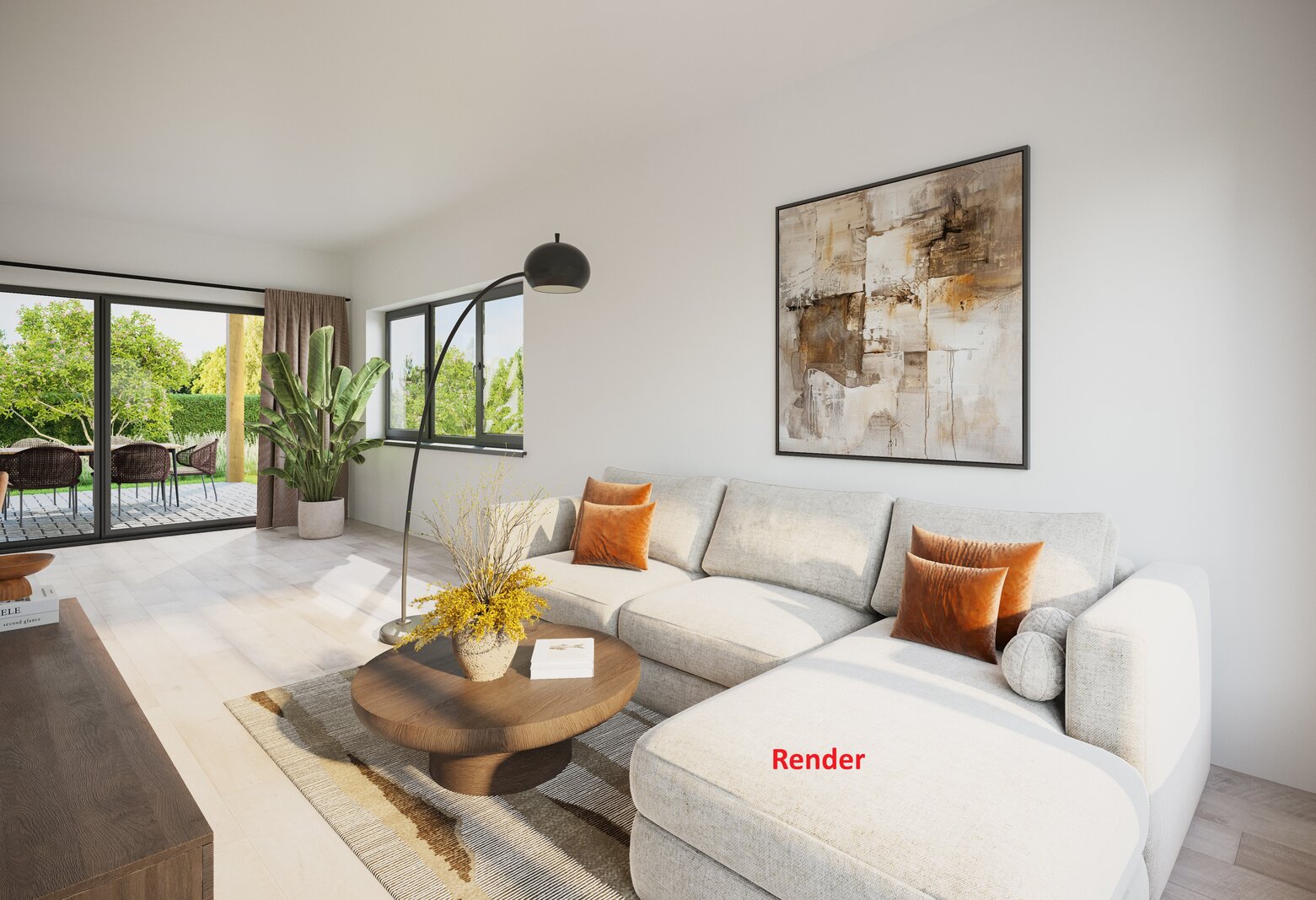 De koper heeft nog keuze in de verdere afwerking van de woning: vloeren, muurafwerking en gedeeltelijk de indeling van de keuken. De keuzes van de materialen wordt rechtstreeks met de verkoper besproken.