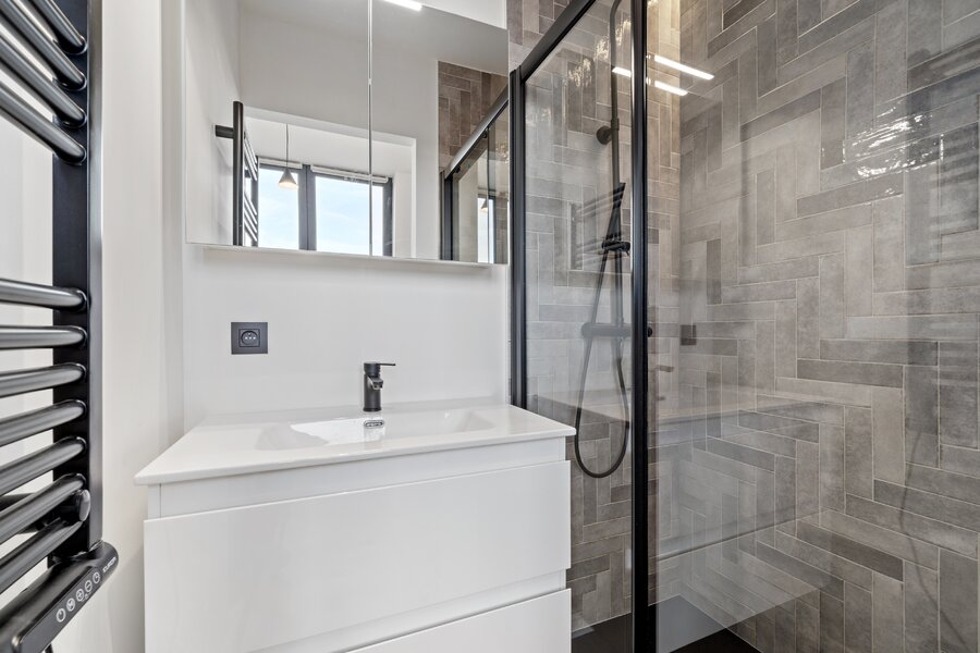 Cet appartement entièrement neuf allie emplacement idéal, finitions haut de gamme et performance énergétique exceptionnelle (PEB A). Sa grande terrasse orientée sud de 24 m² offre un espace extérieur parfait pour profiter du soleil. Grâce à son aménagement moderne et à sa conception soignée, ce bien prêt à emménager conjugue confort et durabilité.