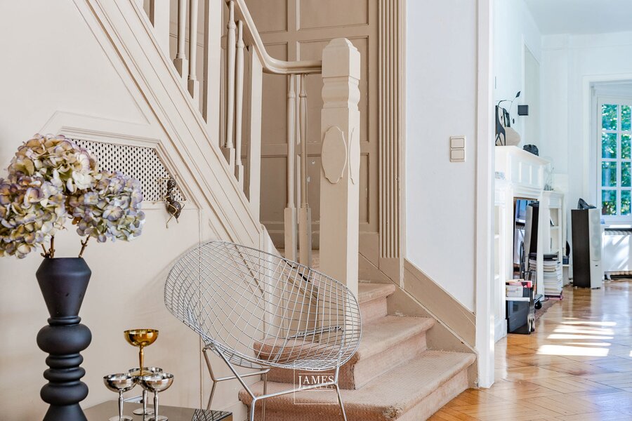 En retrait de l'avenue et parfaitement implantée au cœur du très prisé quartier du Prince d’Orange, cette villa à rénover bénéficie d’une situation rare : un terrain de fond, une intimité totale et un magnifique jardin orienté sud–sud-est, planté d’arbres matures et sans vis-à-vis.