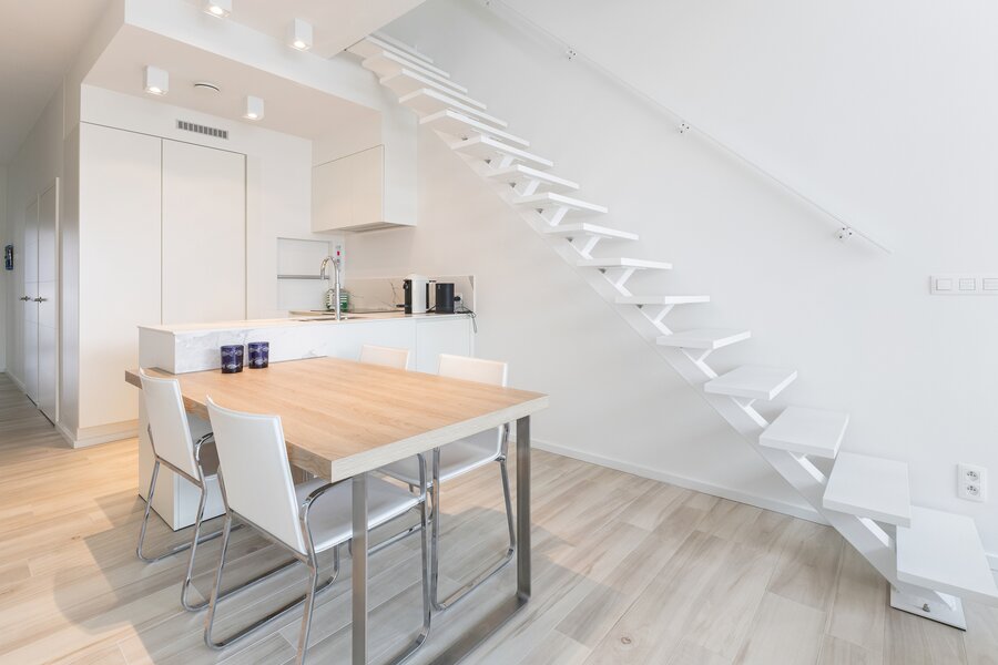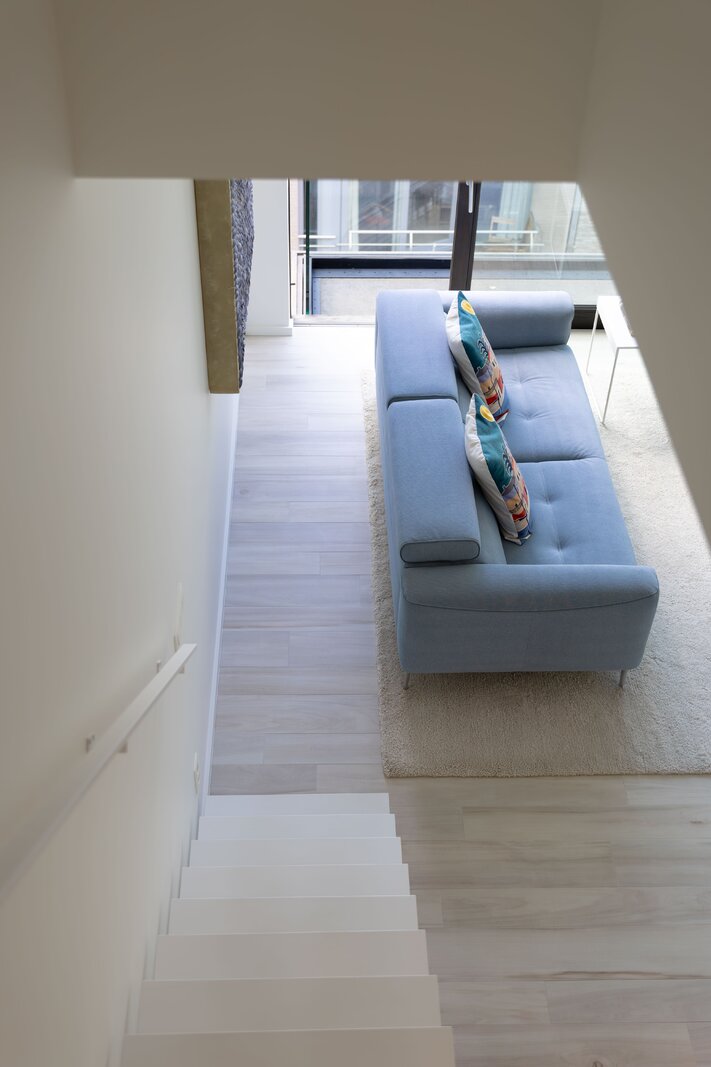Grâce à sa surface habitable de pas moins de 125 m², ses grandes baies vitrées et ses hauts plafonds, vous profitez d’une sensation d’espace inégalée. De plus, ses terrasses spacieuses (44 m²) vous permettent de profiter du soleil tout au long de la journée.