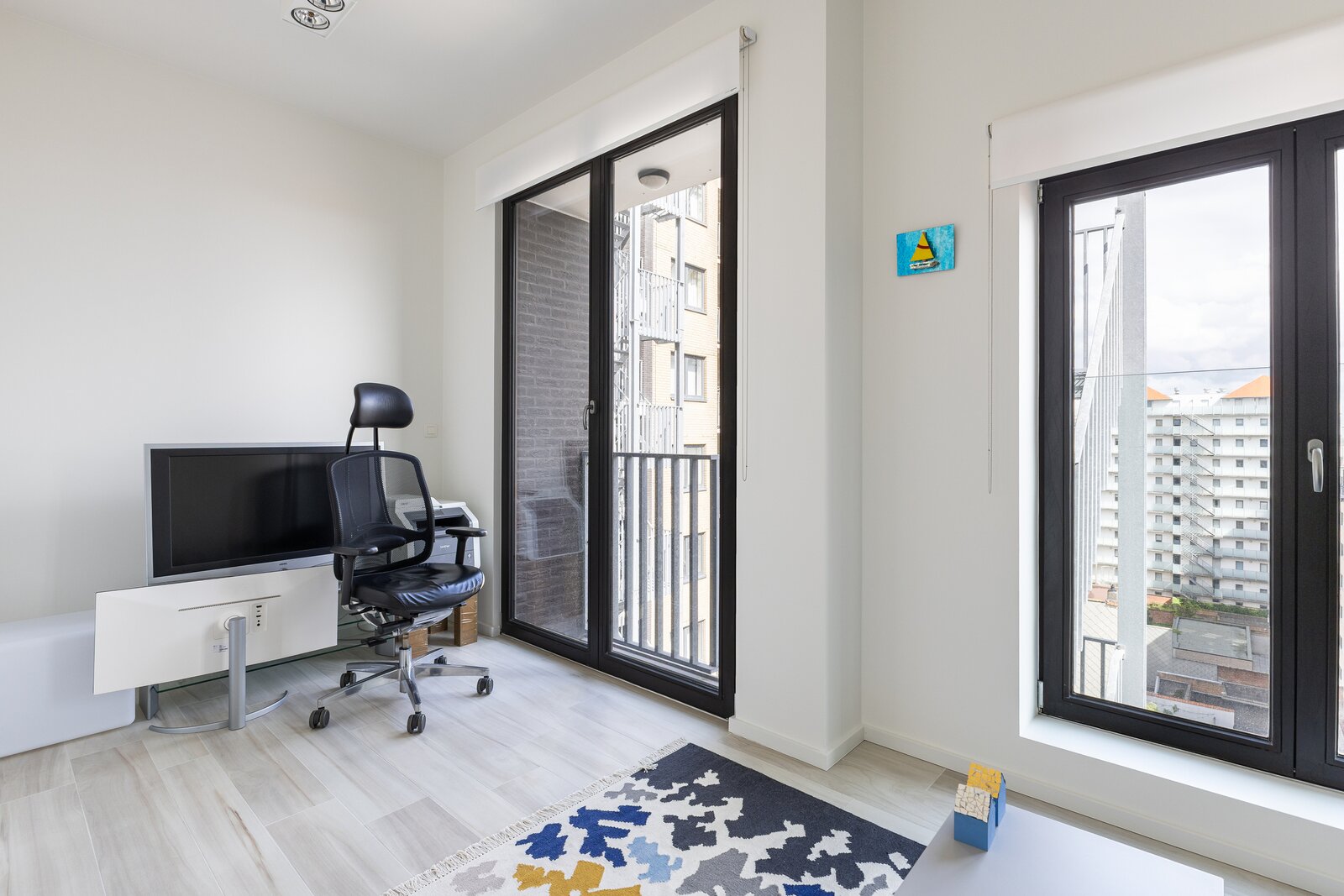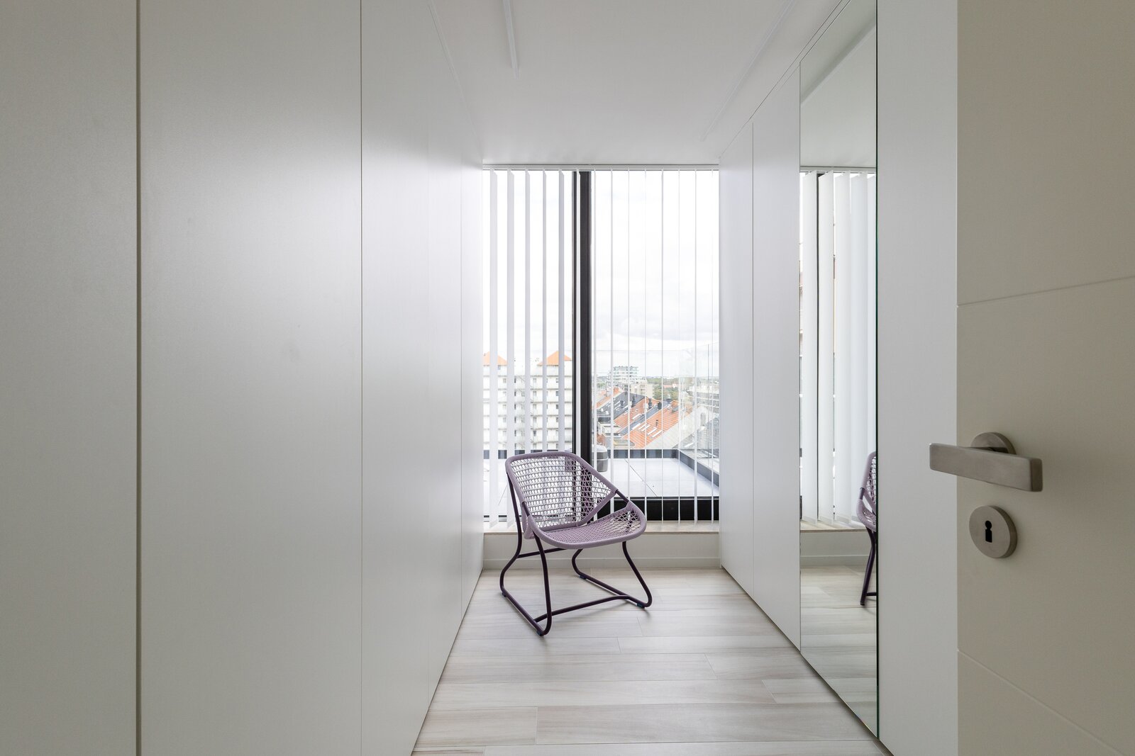8ᵉ étage: Hall d’entrée, séjour lumineux avec terrasse, cuisine ouverte, chambre, salle de bain attenante, 2 débarras, toilette séparée.