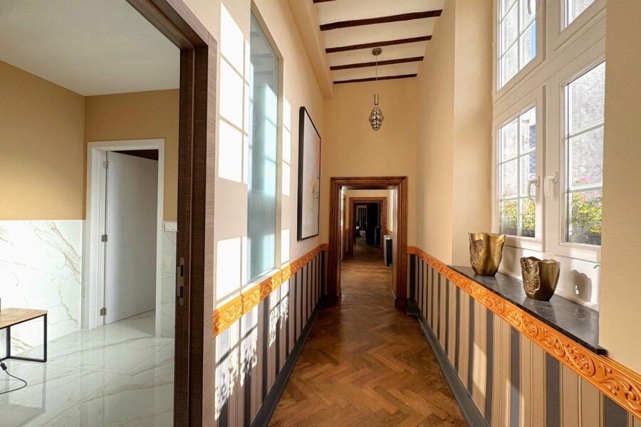 La propriété a récemment bénéficié d’importants travaux de restauration alliant respect du bâti ancien et confort actuel. Le premier bâtiment abrite caves, pièces de réception, garage, étables, fenils et grenier. Le second comprend sous-sol et rez-de-chaussée polyvalent. Le troisième, ancienne conciergerie, dispose d’un garage et d’un logement sur deux niveaux. Le quatrième, vaste dépendance agricole, comprend hangar, local technique, poulailler, four à pain et terrasses extérieures.