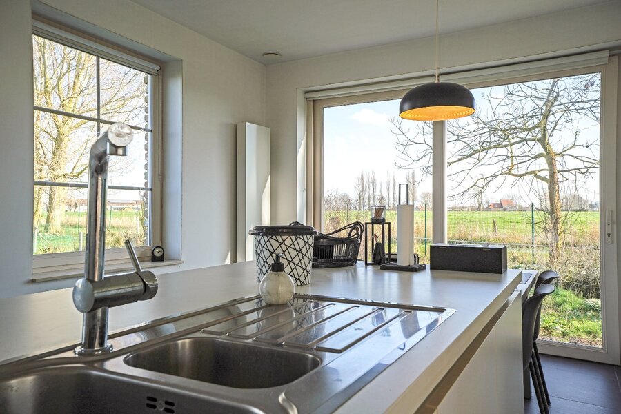KIJKDAG ZATERDAG 21/03 VAN 10U TOT 12U! (graag vooraf inschrijven) Recente open bebouwing (2019) op een perceel van maar liefst +- 8000 m², rustig en landelijk gelegen in Houtem vlakbij de kust. Deze energiezuinige eigendom (EPC label A) combineert hedendaags wooncomfort met ruimte, privacy en tal van mogelijkheden voor paardenliefhebbers, zelfstandigen of hobbyisten. Op het gelijkvloers betreedt u de woning via de inkomhal. De lichtrijke leefruimte met vele raampartijen zorgt voor een aangename verbinding met de tuin. Aansluitend bevindt zich de volledig uitgeruste keuken met tegelvloer en kwalitatieve toestellen. Verder is er een praktische berging/technische ruimte. Er zijn twee badkamers: één met hangtoilet, lavabo en douche. De slaapkamer op het gelijkvloers vormt een comfortabele privésuite met dressing en een ensuite badkamer voorzien van dubbel lavabomeubel en inloopdouche. De eerste verdieping bestaat uit een ruime zolder waar eenvoudig extra slaapkamers en een bijkomende badkamer kunnen worden ingericht. Een uitgewerkt plan met twee slaapkamers, badkamer, berging en extra zolderruimte is beschikbaar. Qua technieken is het geheel uitgerust met centrale verwarming, een warmtepompboiler, houtkachel, ventilatiesysteem D, 6 zonnepanelen en twee regenwaterputten van elk 7.500 liter. PVC-ramen met hoogrendementsbeglazing en het zadeldak dragen bij aan het energiezuinige karakter. Buiten geniet u van een tuin rondom het huis, een ruime weide en een laag- en hoogstamboomgaard. Daarnaast beschikt de eigendom over een loods van 320 m² met 5 paardenboxen en opslagruimte, evenals een carport van 40 m² voor het overdekt plaatsen van wagen(s).